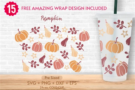 24oz Pumpkin with Fall Leaves No Hole Starbucks Cold Cup Svg