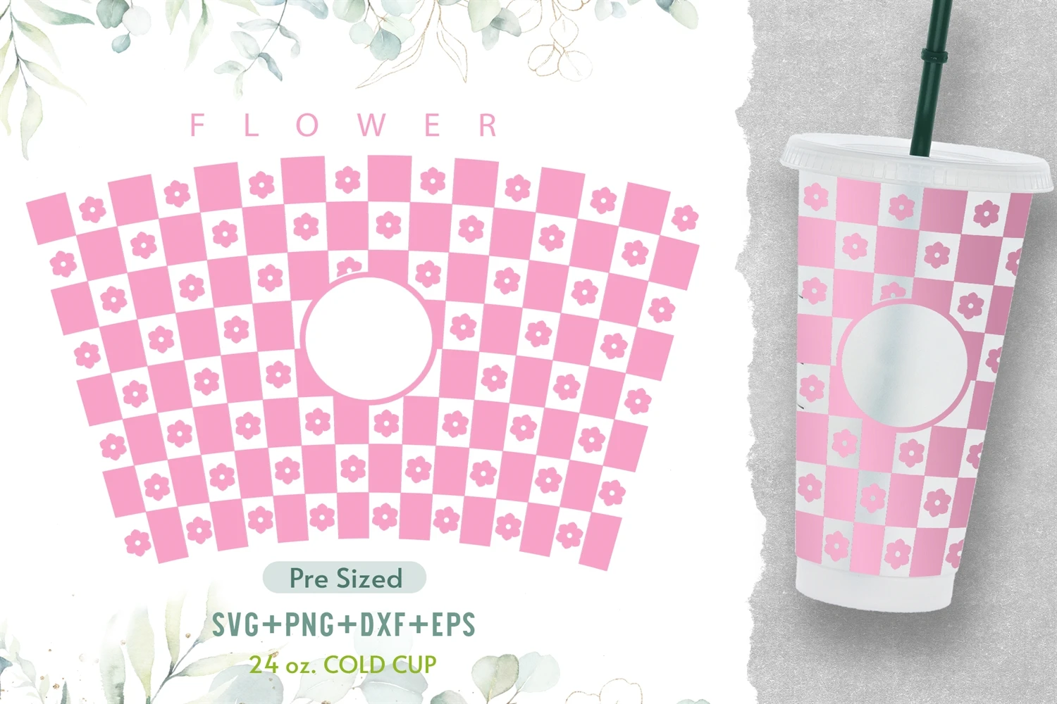 24oz Retro Flower Starbucks Cold Cup Svg, Venti Cold Cup Svg