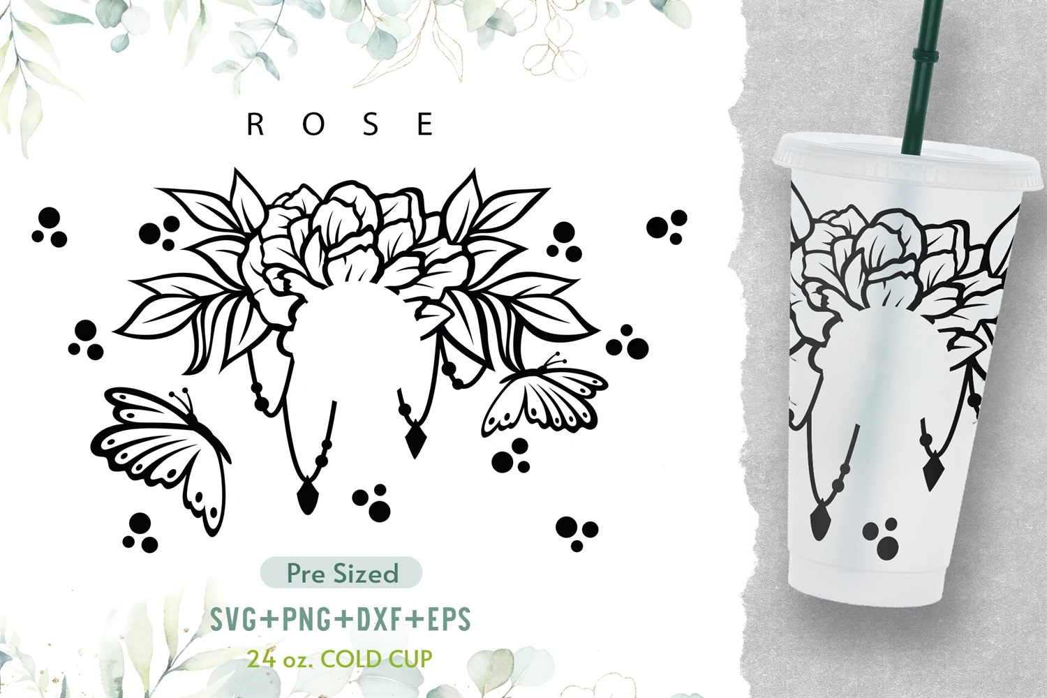 24oz Rose Starbucks Cold Cup Svg, Flower Venti Cold Cup Svg