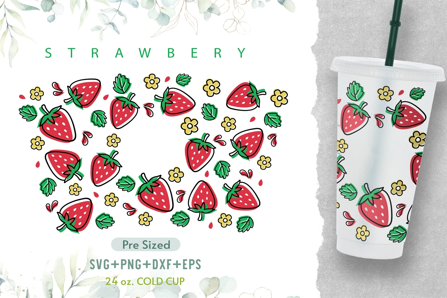 24oz Strawberry Starbucks Cold Cup Svg, Venti Cold Cup Svg