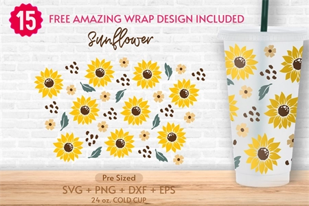24oz Sunflower No Hole Starbucks Cold Cup Svg