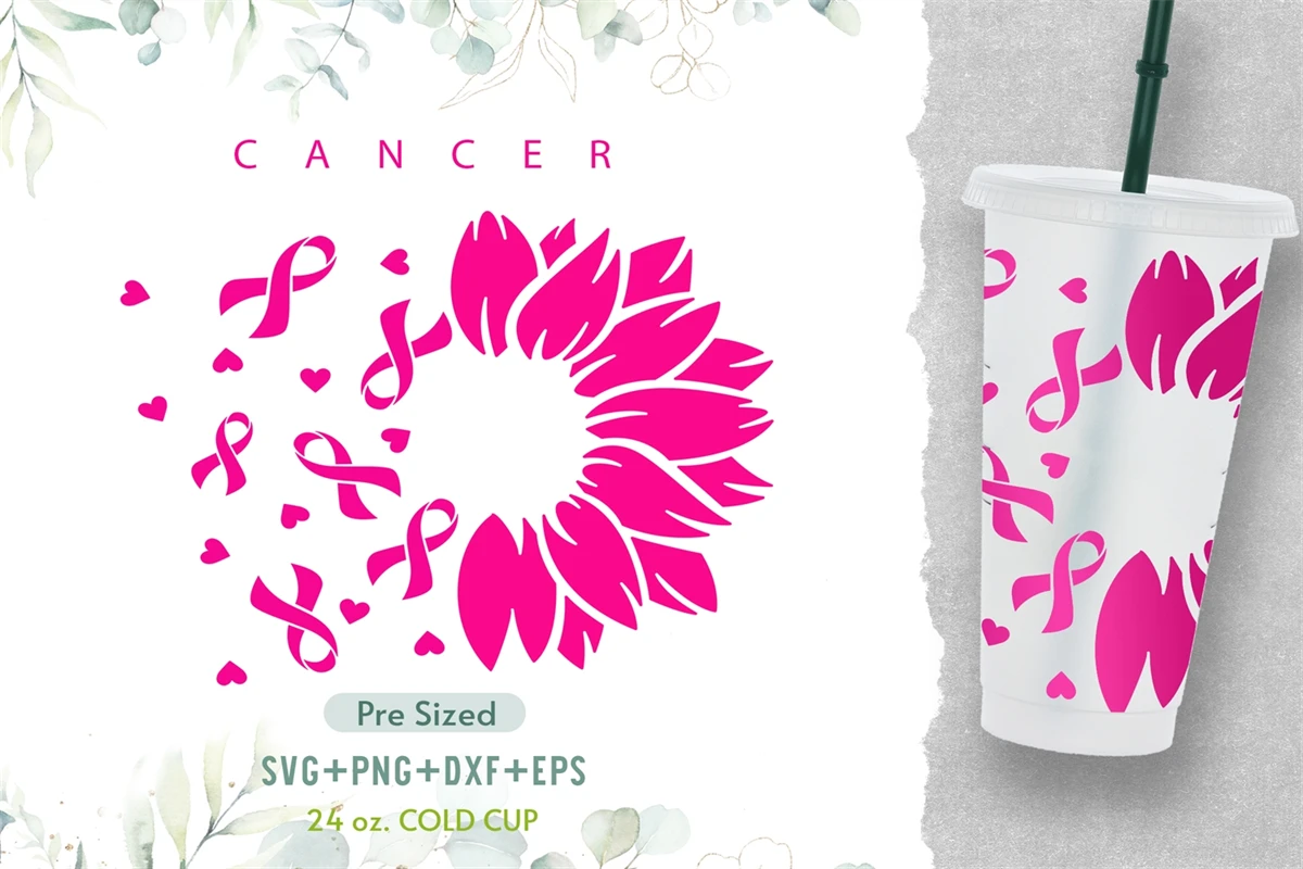 24oz Sunflower Ribbon Starbucks Cold Cup Svg,Venti Full Wrap