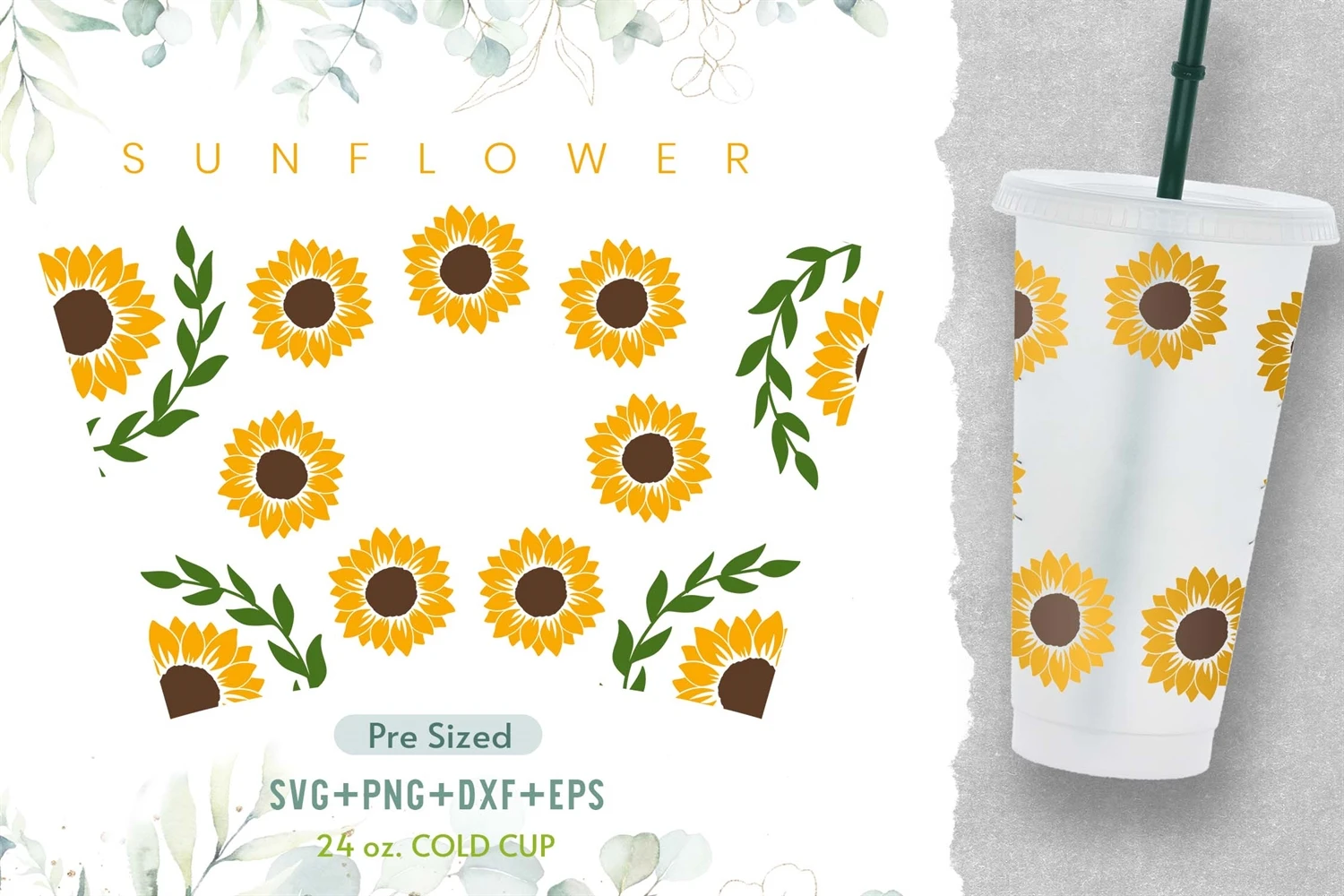 24oz Sunflower Starbucks Cold Cup Svg, Flower Venti Cup Svg