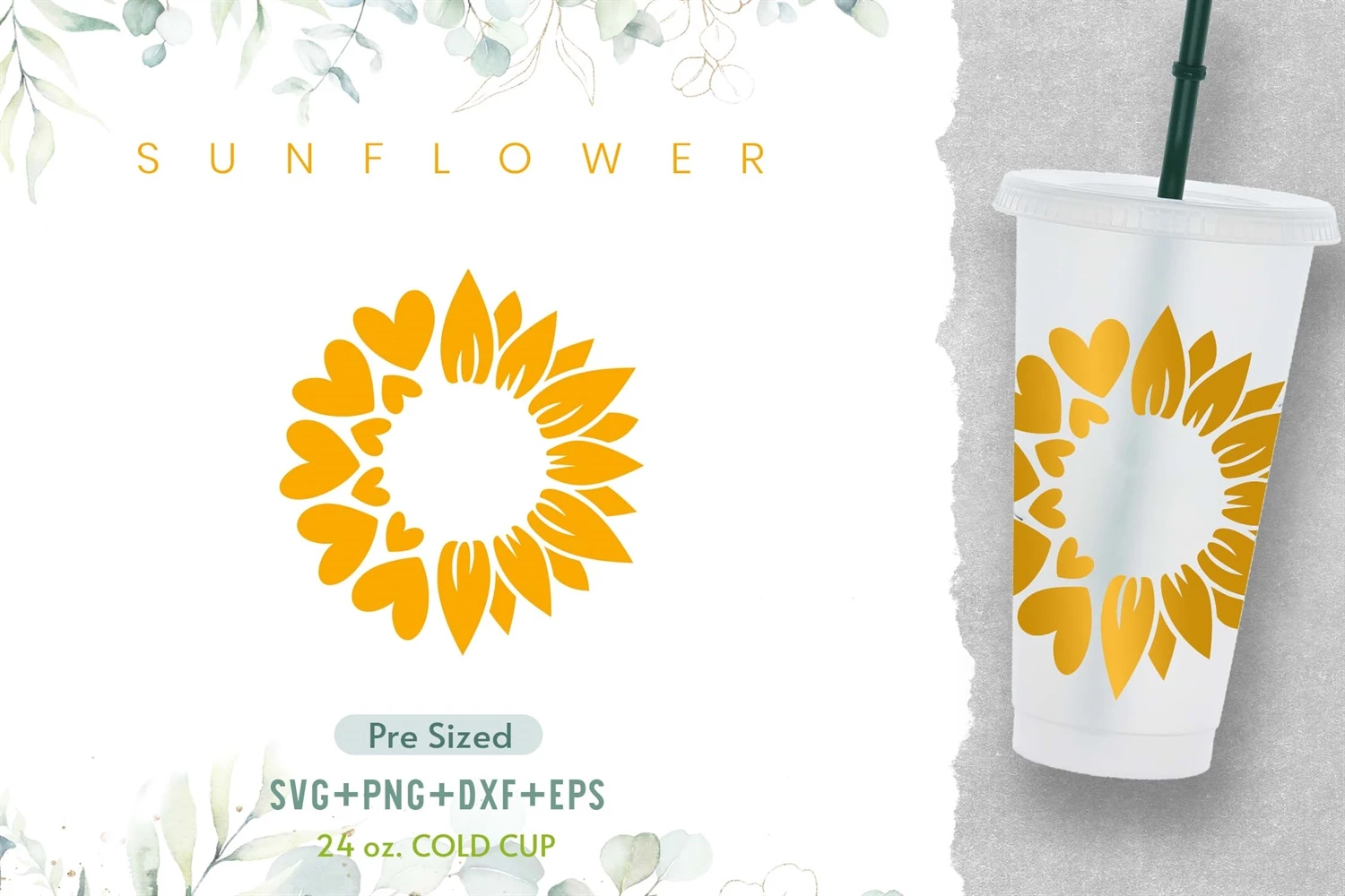 24oz Sunflower Starbucks Cold Cup Svg, Heart Svg, Flower Svg