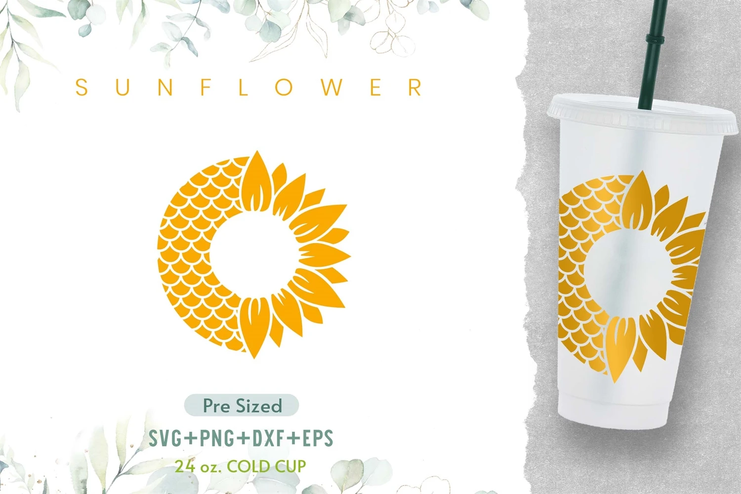 24oz Sunflower Starbucks Cold Cup Svg, Mermaid Svg, Flower
