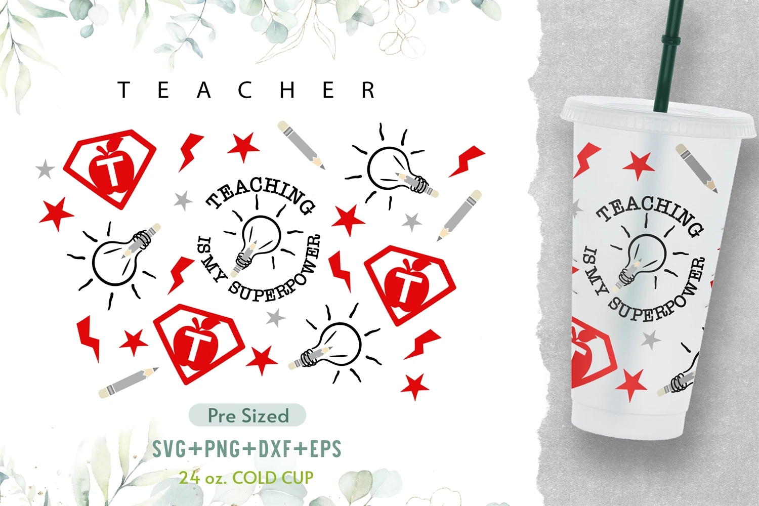 24oz Teacher No Hole Starbucks Cup Svg, Venti Full Wrap Png