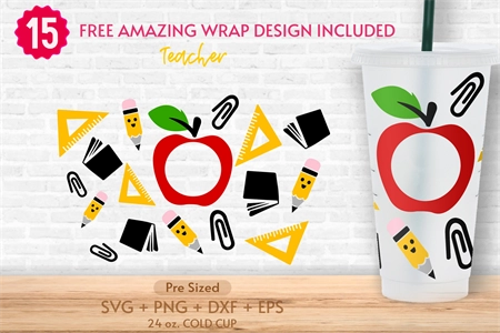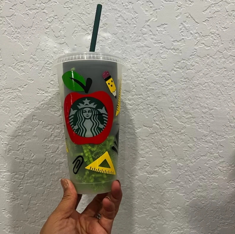 24oz Teacher Starbucks Cold Cup Svg, Teacher Life, Apple Svg