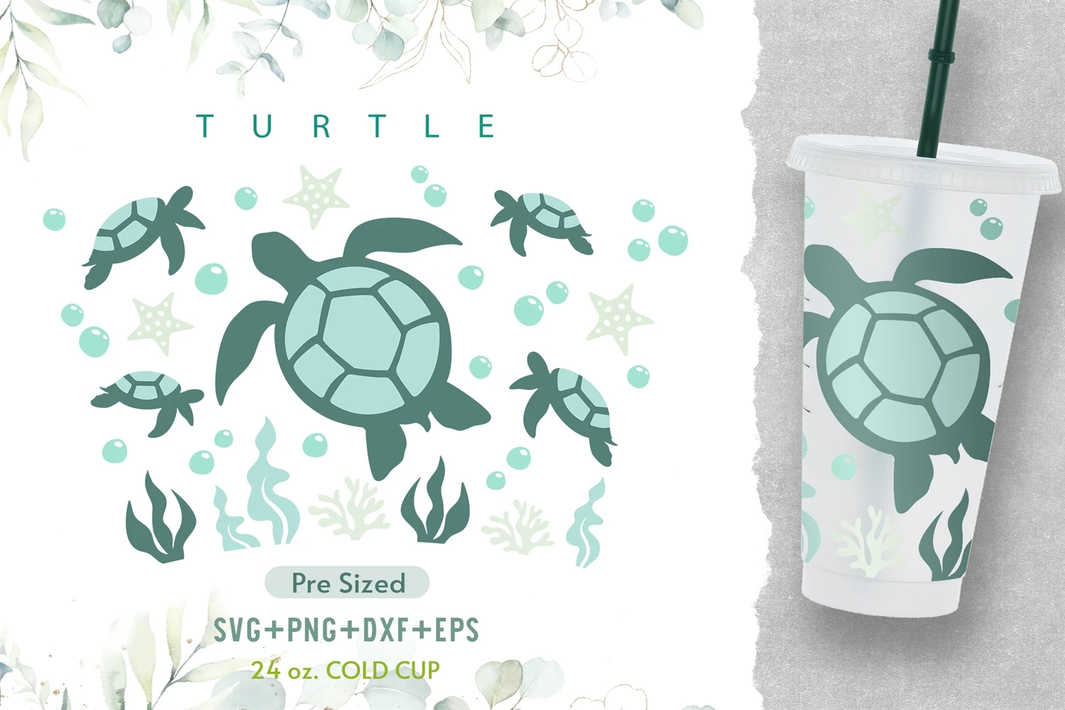 24oz Turtle No Hole Starbucks Cup Svg, No Hole Venti Cup Svg