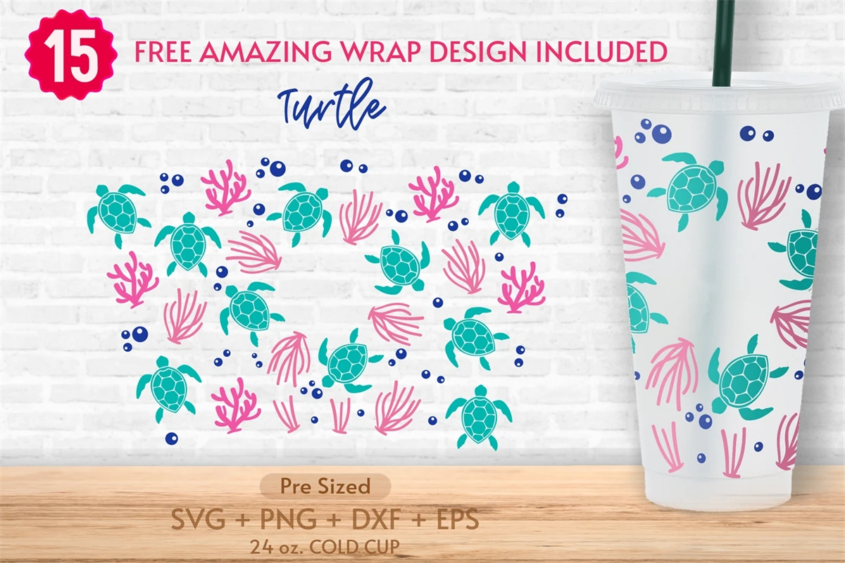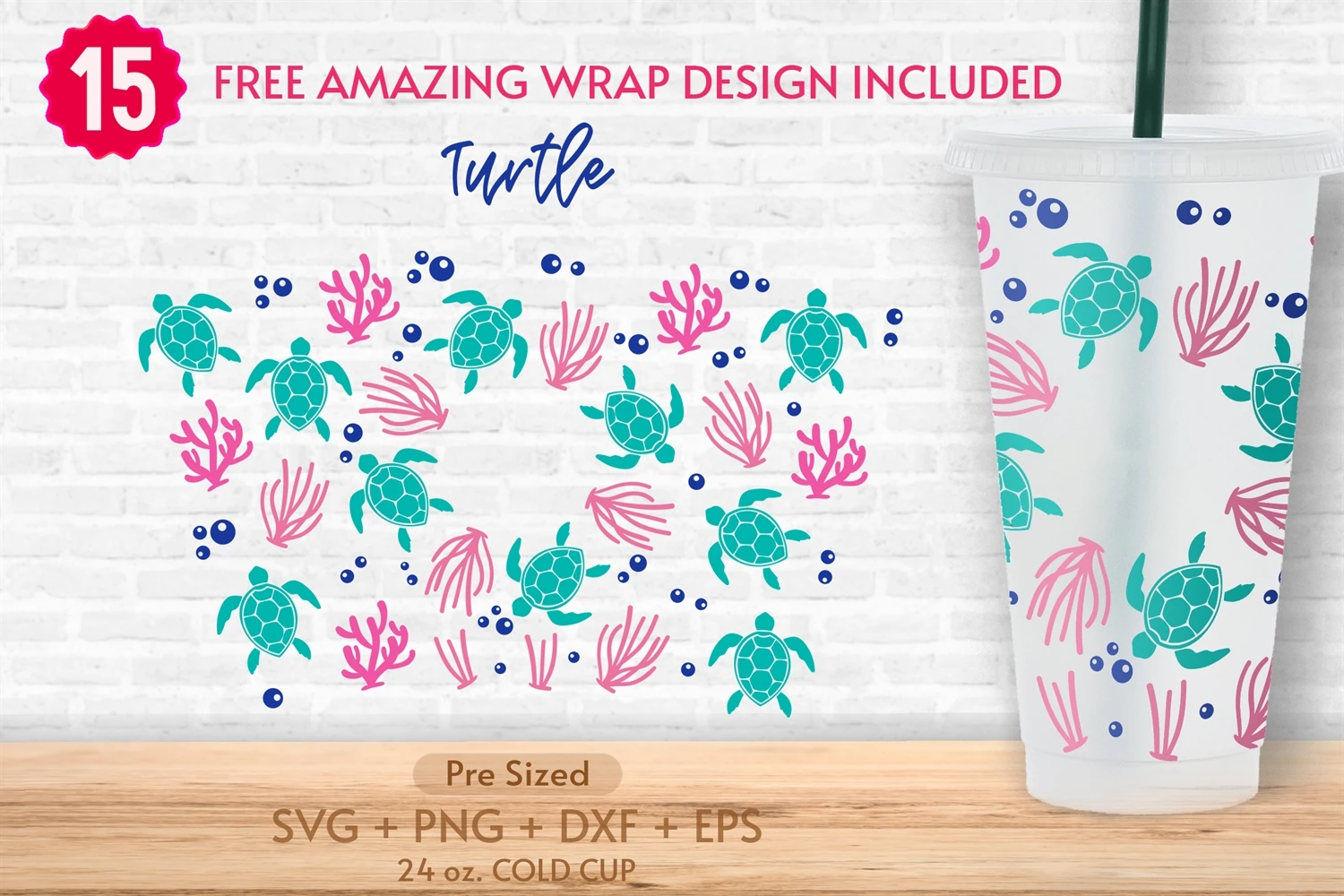 24oz Turtle Starbucks Cold Cup Svg, Sea Turtle Svg, Undersea