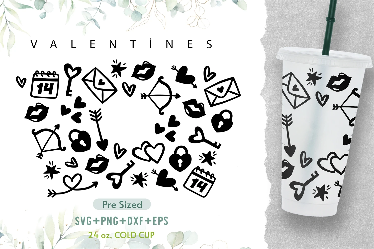 24oz Valentines Day Starbucks Cold Cup Svg, Venti Full Wrap