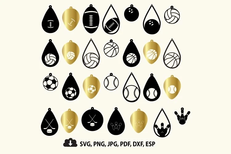 28 Sports Balls Svg, Soccer, Football, Tennis, Volleyball, Basketball, Bowling, Leather, Jewellery Earring Bundle, Cut file, Cricut