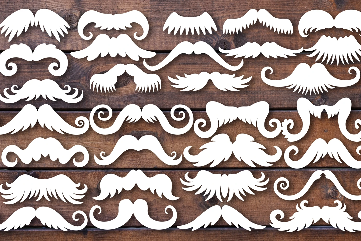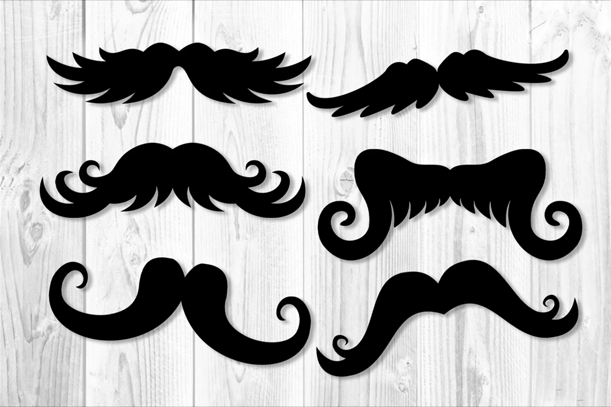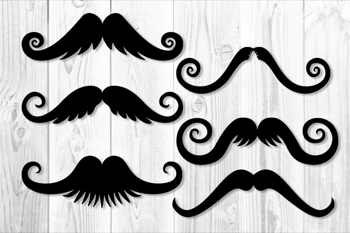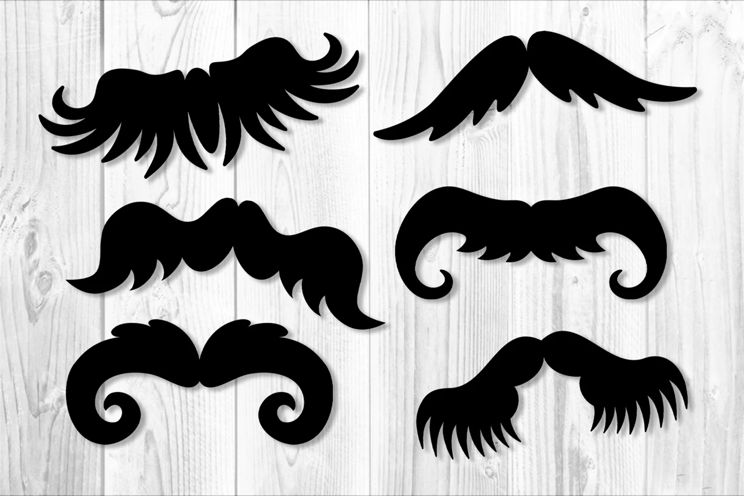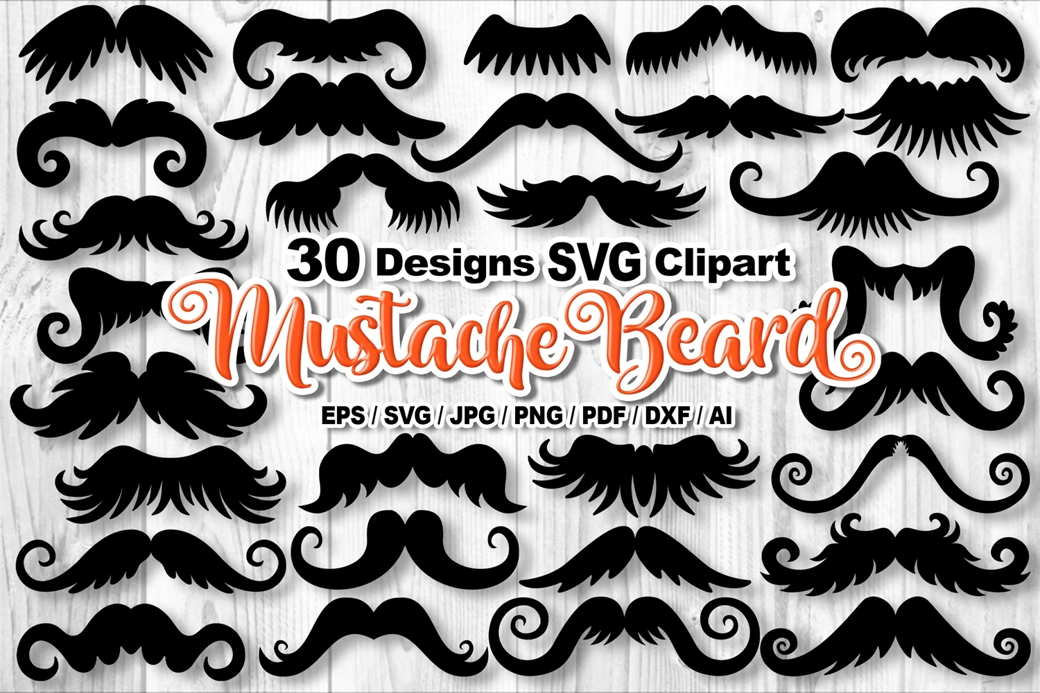 Set of 30 Designs Gentlemen Mustache Beard Father's Day SVG Silhouette Clipart Cut Files Design Elements.