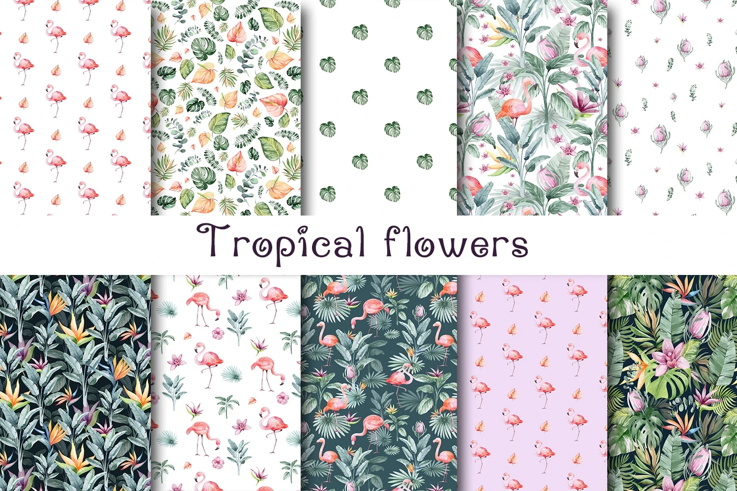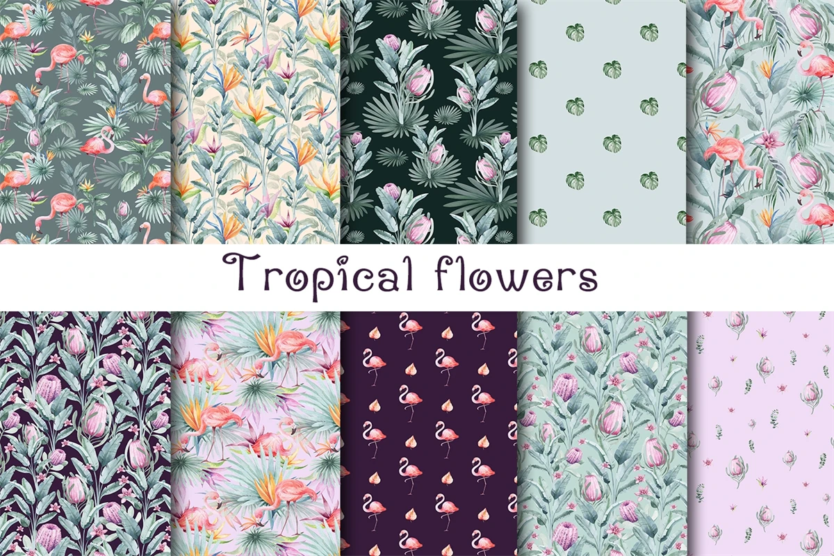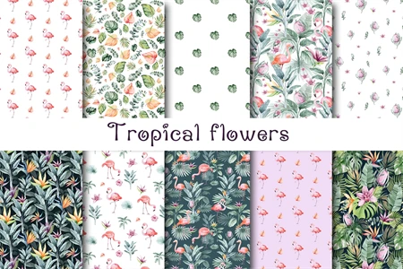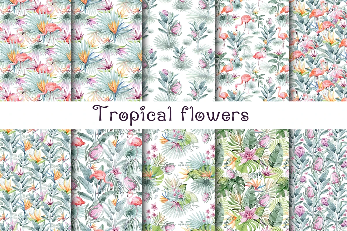 Tropical flowers, digital paper.
