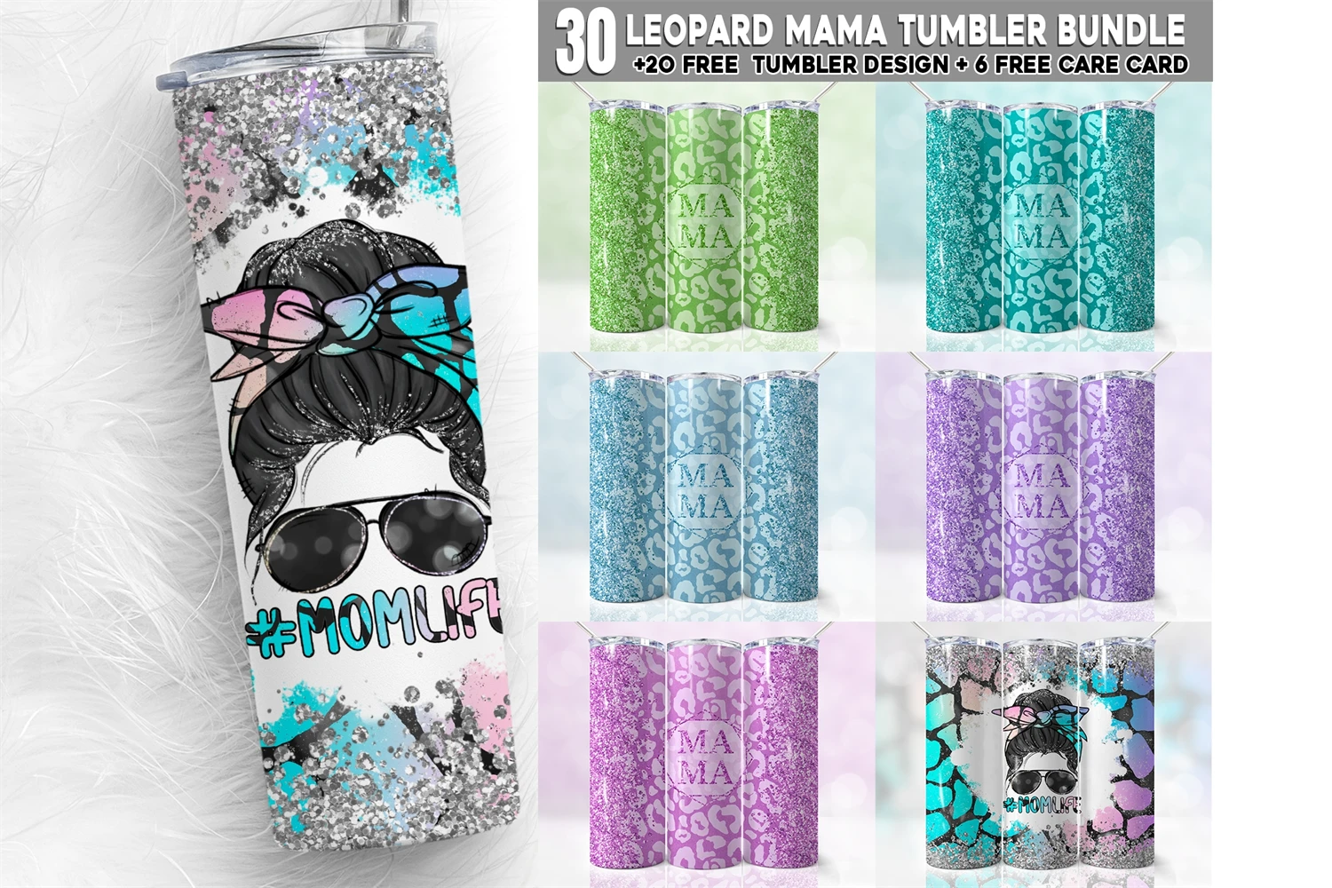 30 Leopard Mama Bundle, 20oz Mama Skinny Tumbler Wrap Png