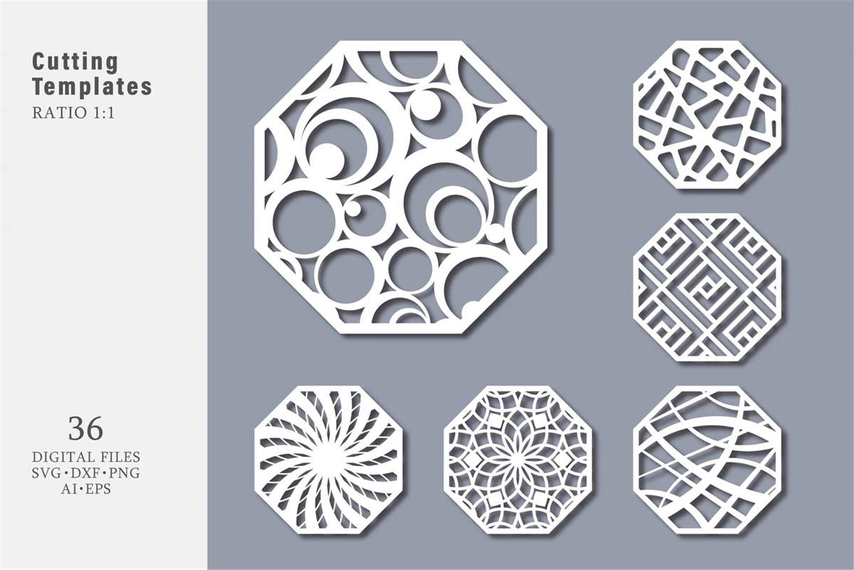 This product includes 36 digital vector templates for cutting which you can use for creating your projects.