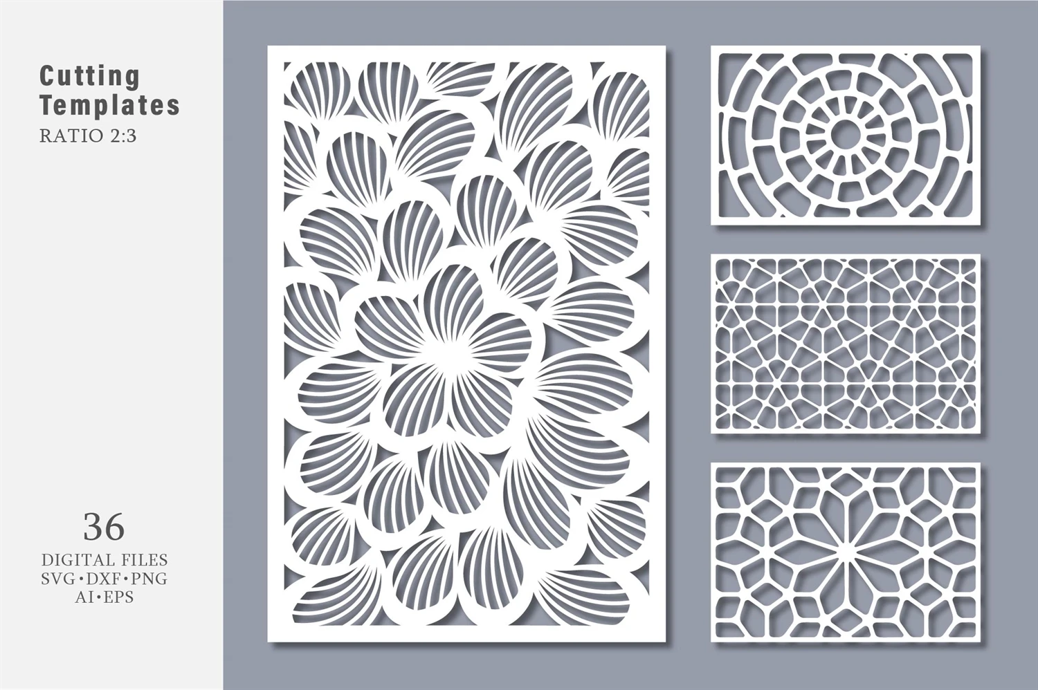 This product includes 36 digital vector templates for cutting which you can use for creating your projects.