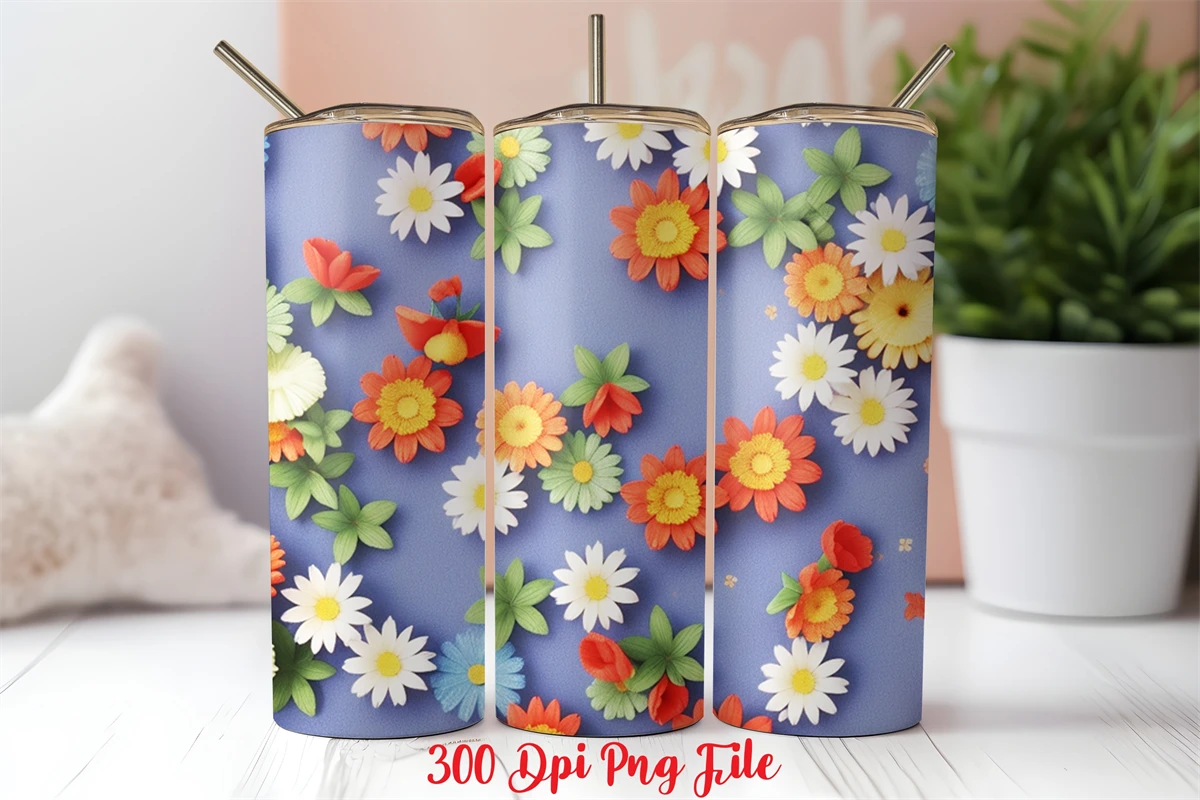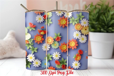 3D 4th of July Wildflowers pattern Tumbler Wrap design