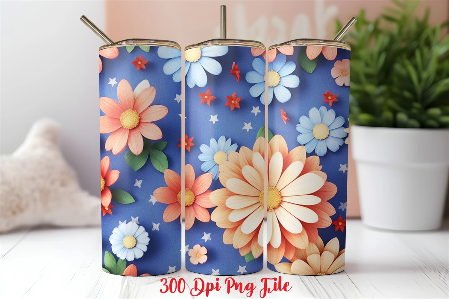 3D 4th of July Wildflowers pattern Tumbler Wrap design