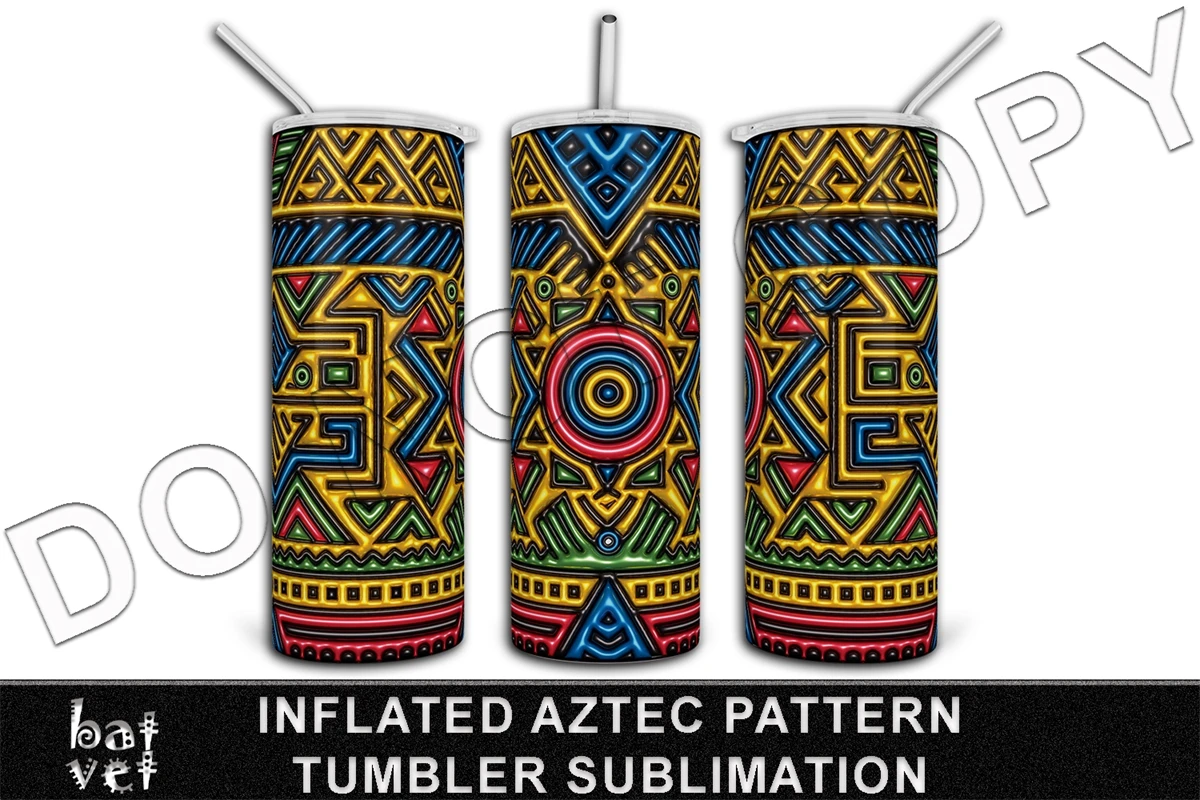 3D Aztec Pattern Tumbler Sublimation / Inflated Western Tumbler PNG Tumbler