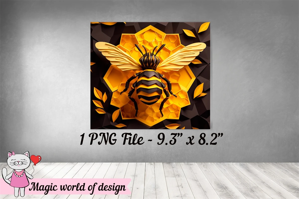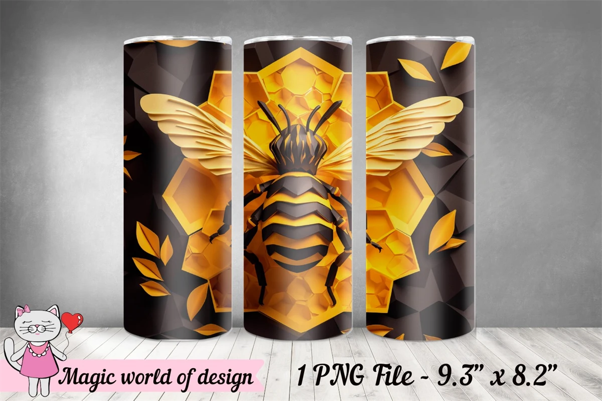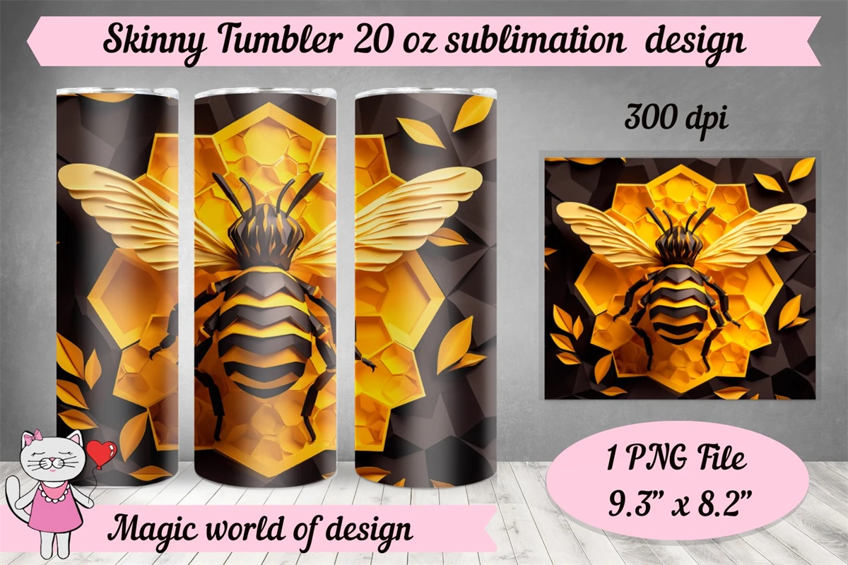 3D Bee Floral 20 oz Skinny Tumbler Wrap PNG, Sublimation