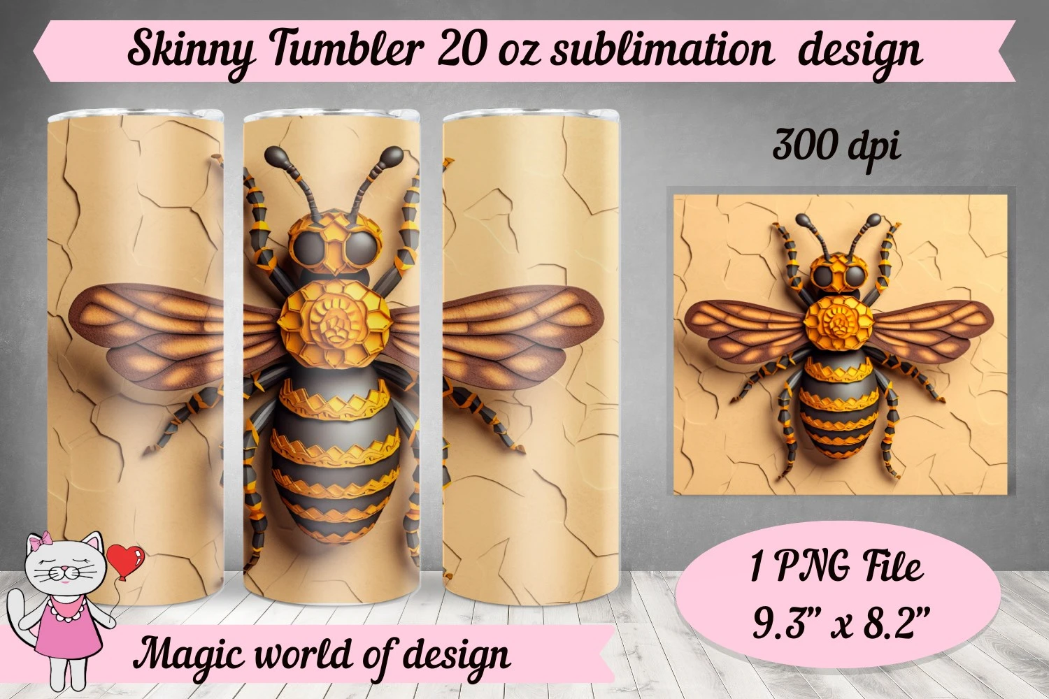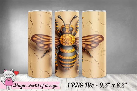 3D Bee for 20 oz Skinny Tumbler Wrap PNG, Sublimation