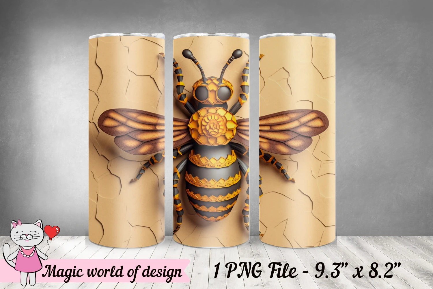 3D Bee tumbler wrap png