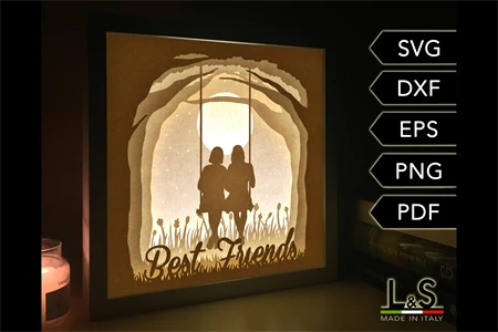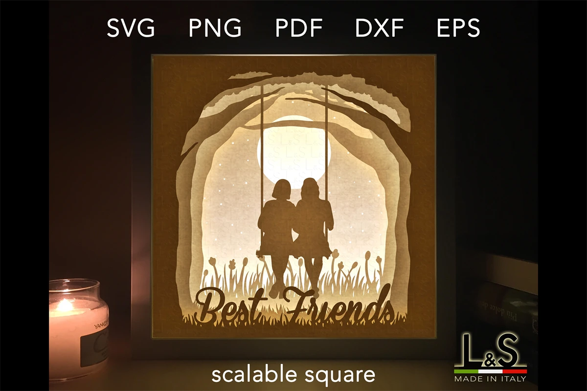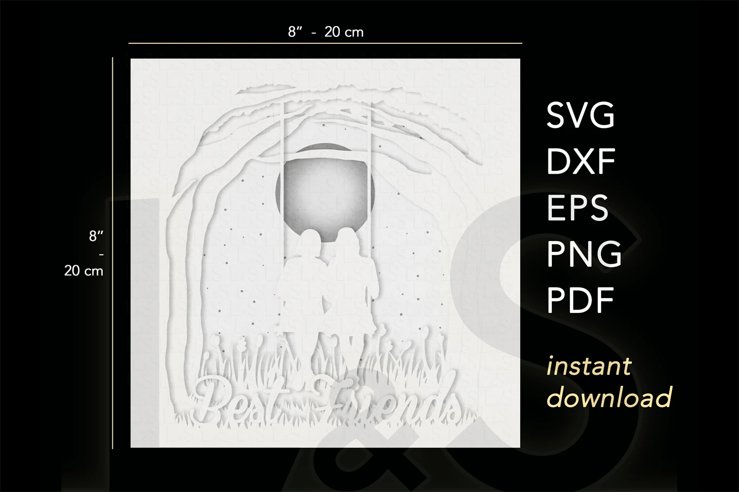 3D Best Friends Shadow Box SVG, Layered Light Box Template