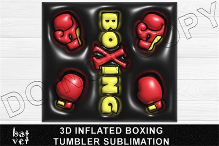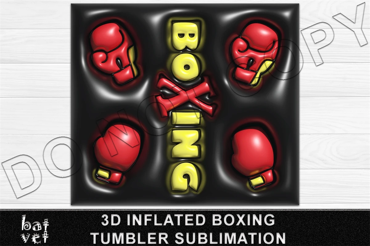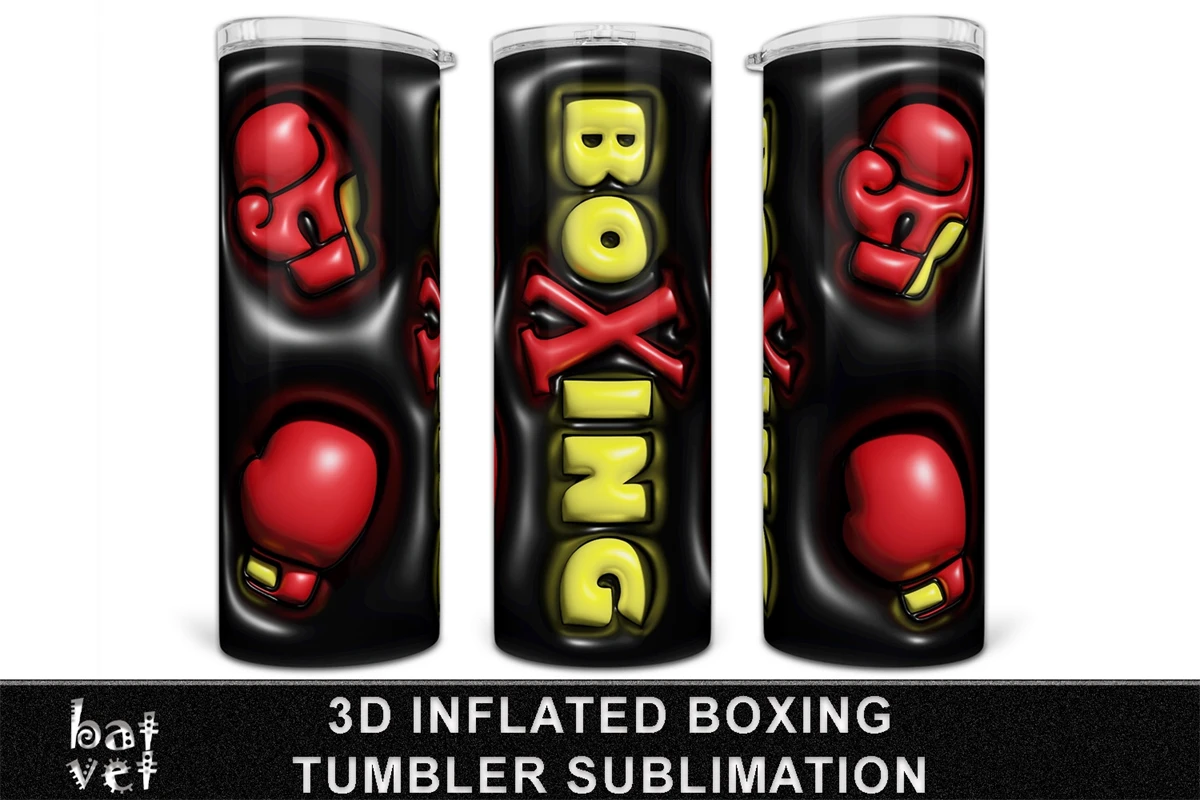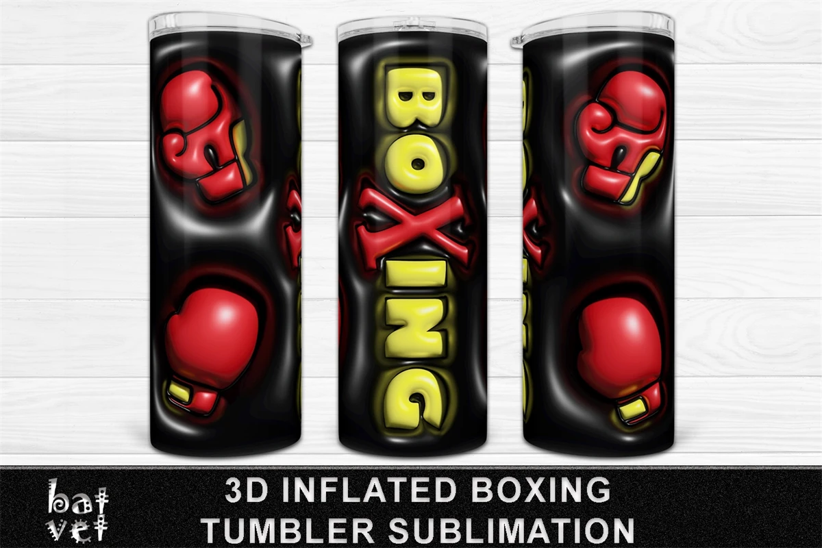 3D Inflated 20 Oz Tumbler, Puffy Inflated Boxing Text and Boxing Gloves Sublimation Wrap.