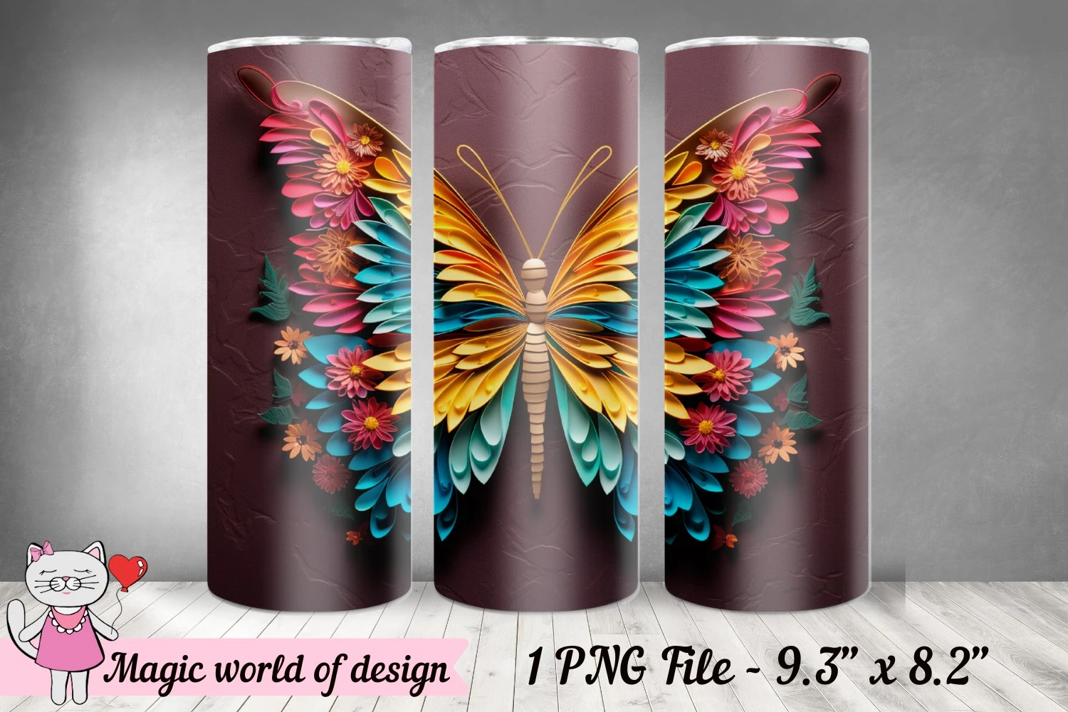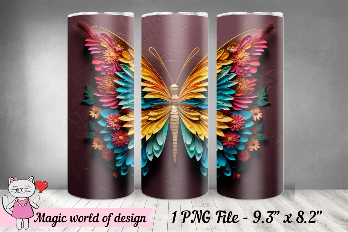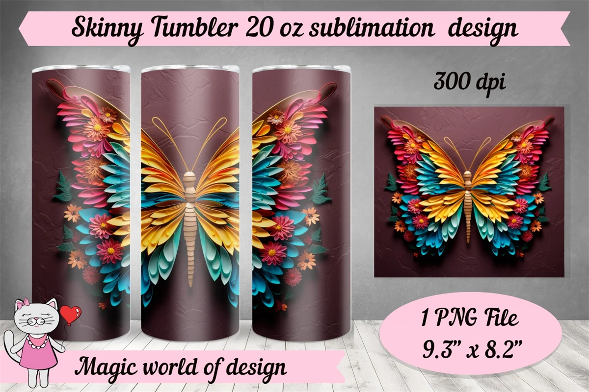 3D butterfly 20 oz Skinny Tumbler Sublimation,paper quilling