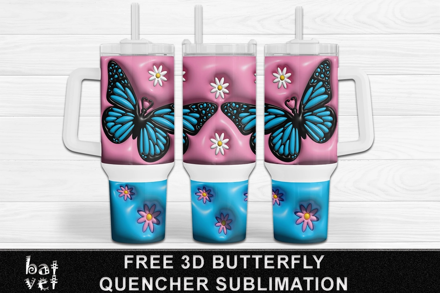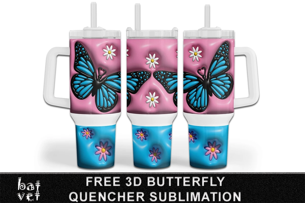 3D Butterfly Quencher Wrap Design / 3D Butterfly Sublimation Quencher / Bubble Wrap Quencher PNG