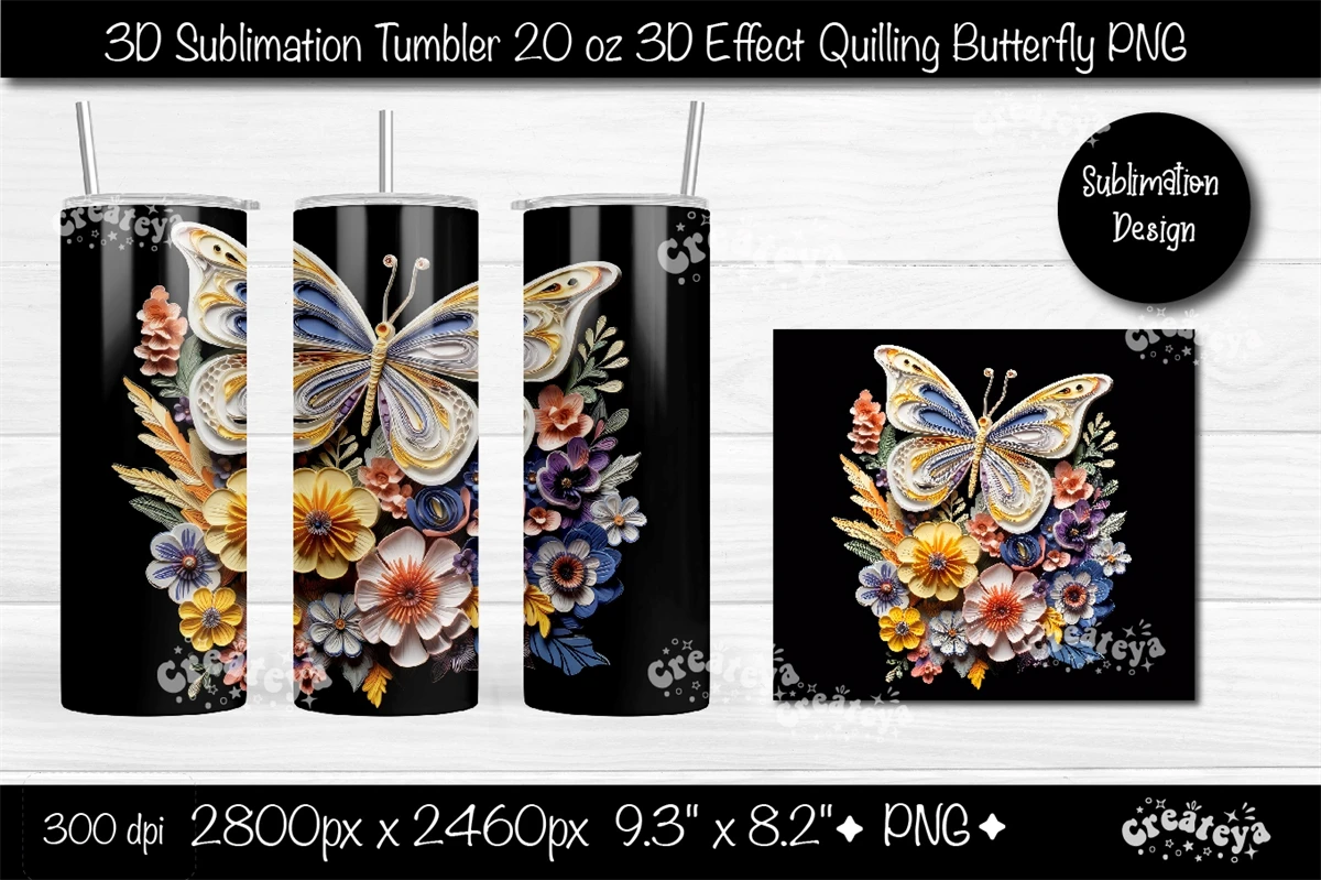 3d Butterfly tumbler wrap Butterfly 3d sublimation tumbler wrap tumbler 20 Oz sublimation design PNG. This 20 oz skinny 3d Butterfly Quilling tumbler sublimation design is inspired by the art of 3D Quilling.