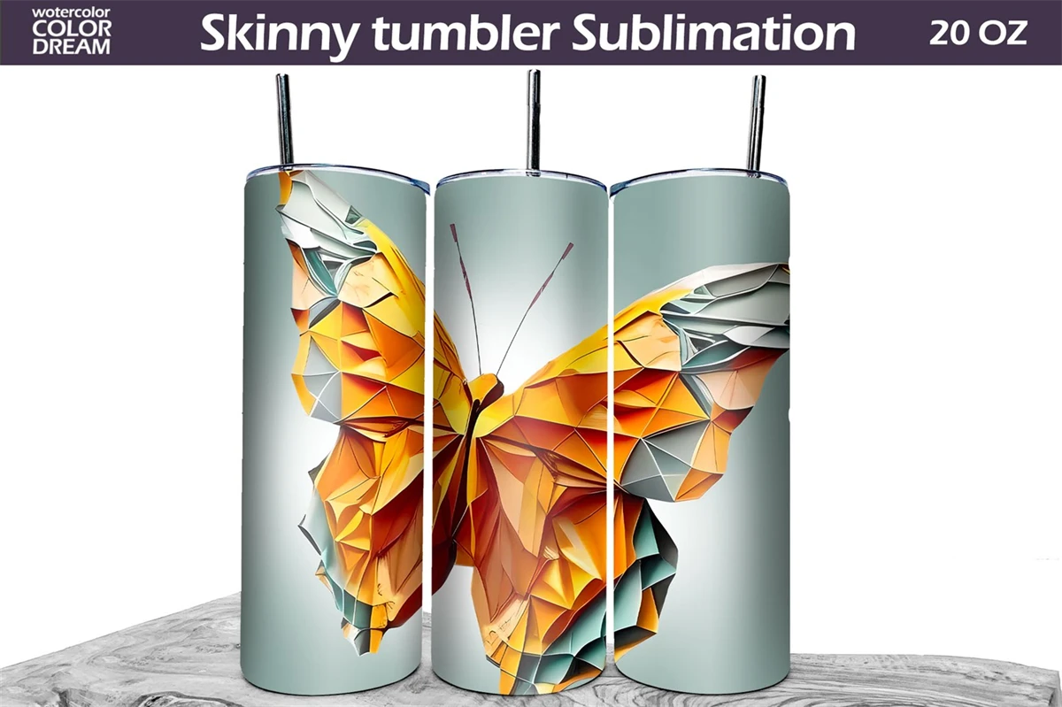 3D Butterfly Tumbler. Yellow Butterfly Tumbler Wrap