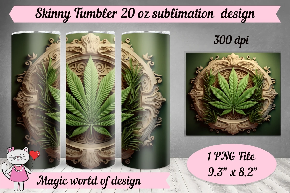 3D cannabis fresco for skinny Tumbler 20 oz Png Sublimation