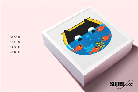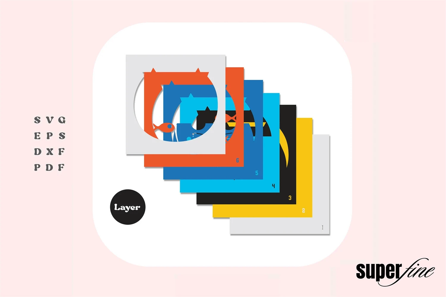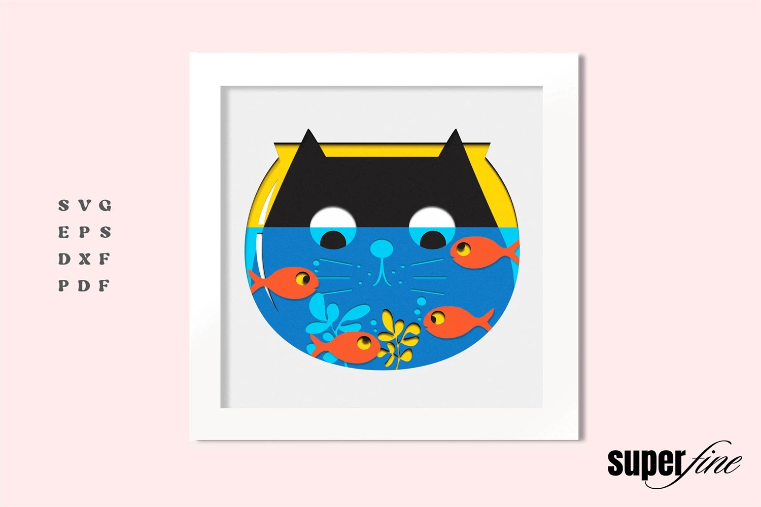 Funny Black Cat and Fish Glass Jar 3D Paper cut Art