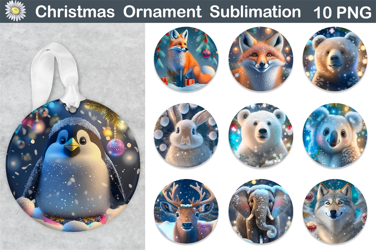 3D Christmas Animals Ornament. Christmas Ornament Bundle