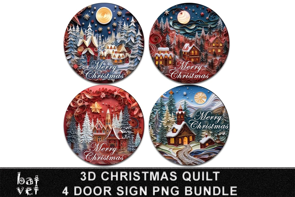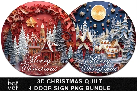 3D Christmas Door Sign Bundle Christmas Quilt Door Hanger PNG Puffy Christmas Welcome Sign 4 PNG Files