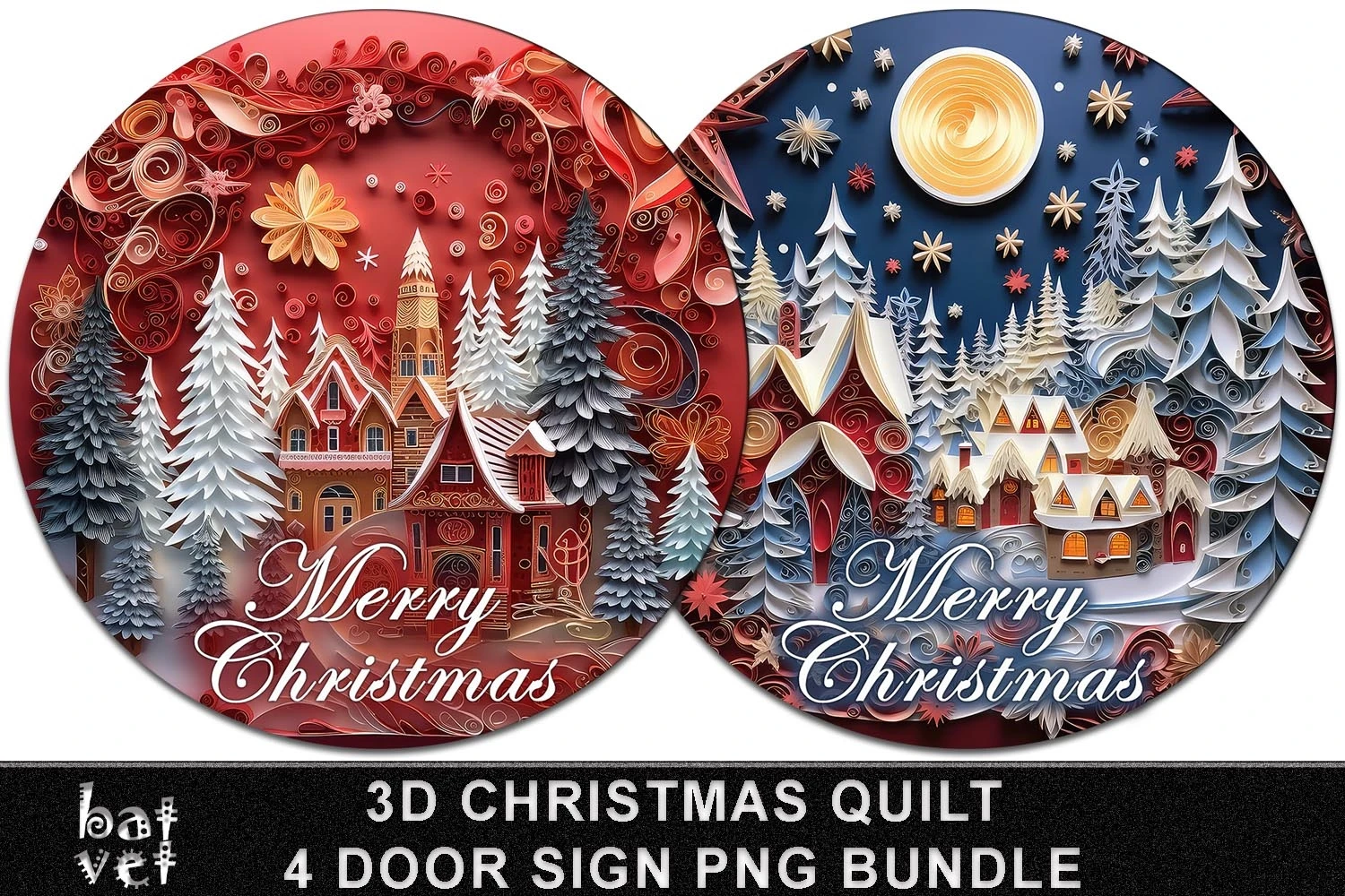 Puffy Christmas 3D Quilt Christmas Village, Christmas Eve, Merry Christmas Door Sign Bundle.