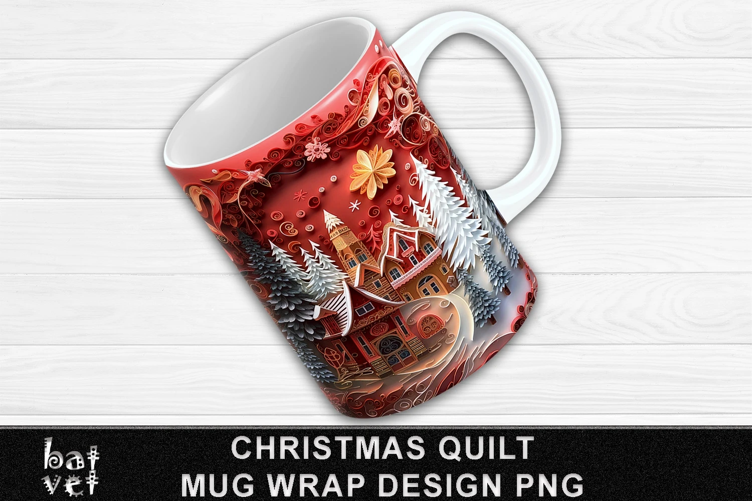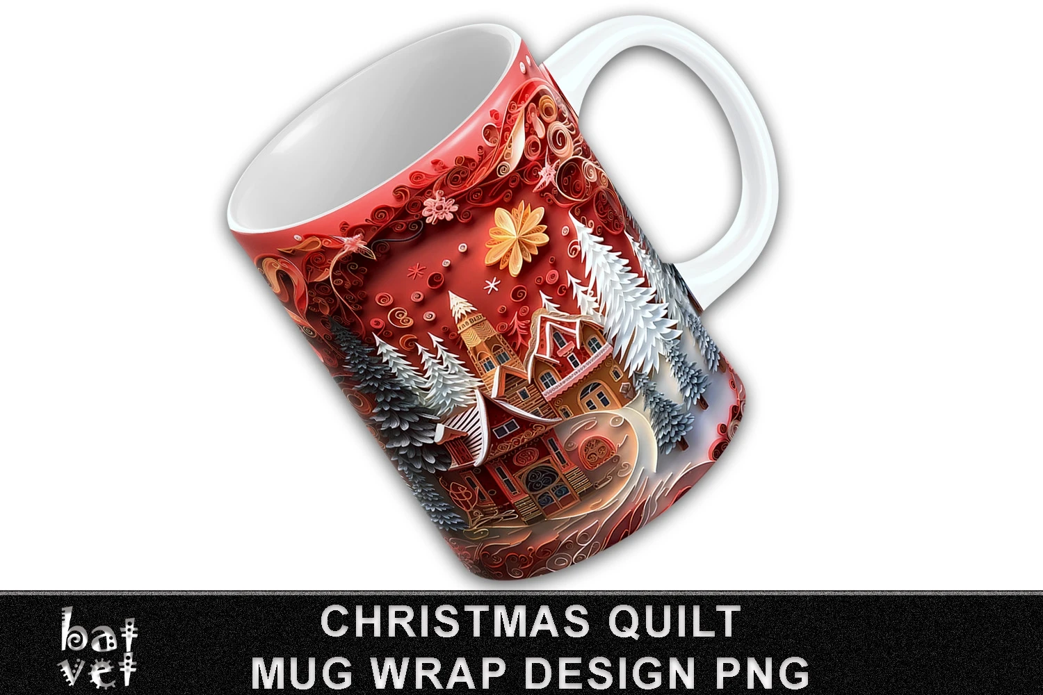 3D Christmas Mug Wrap Sublimation Paper Quilling Wrap Design
