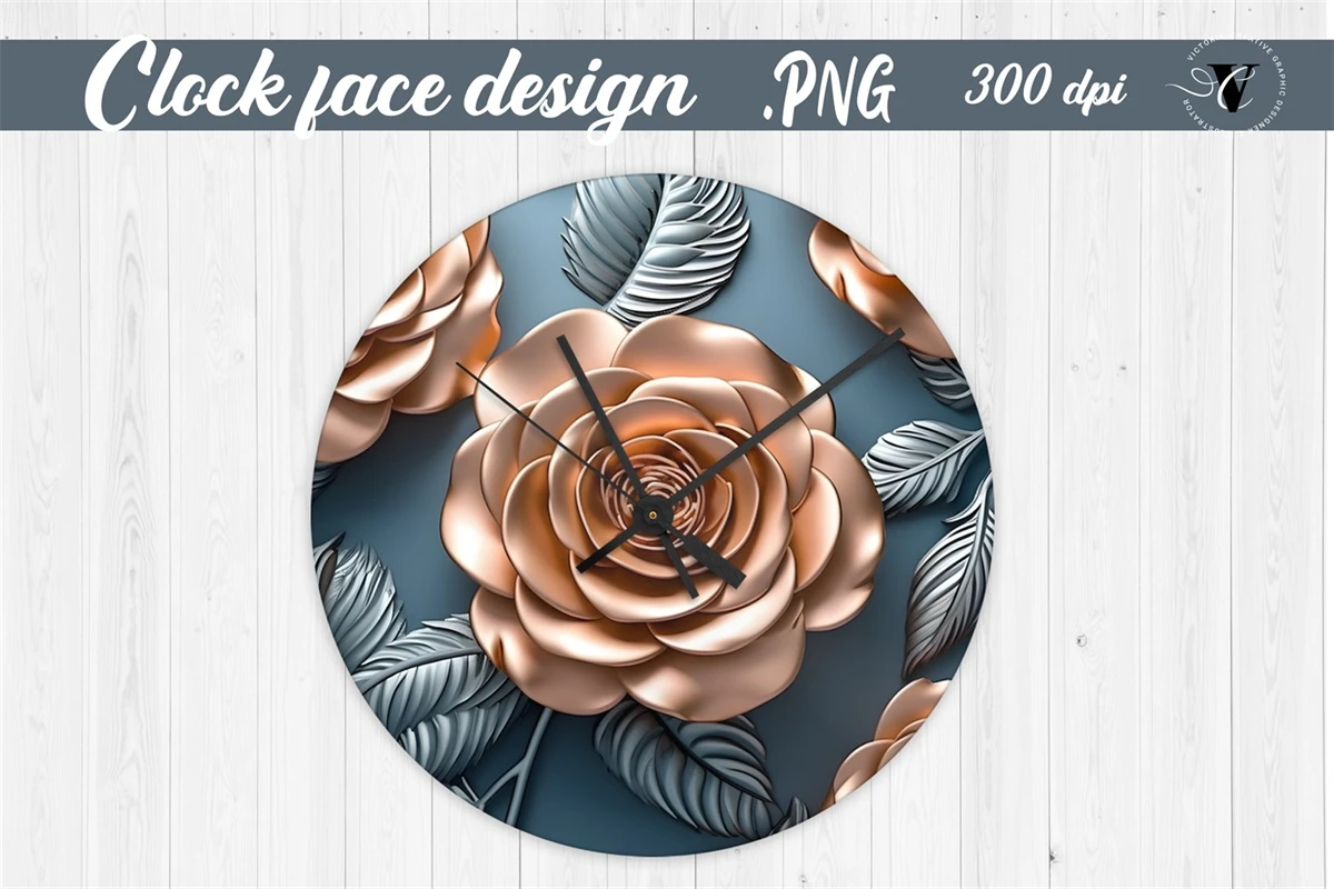 3D gold rose sublimation, 3D gold rose clock face, Clock face sublimation design, 3D Flowers sublimation, 3D