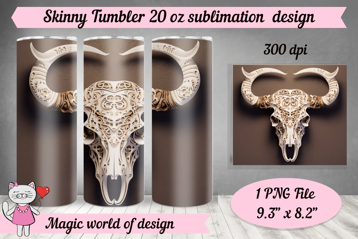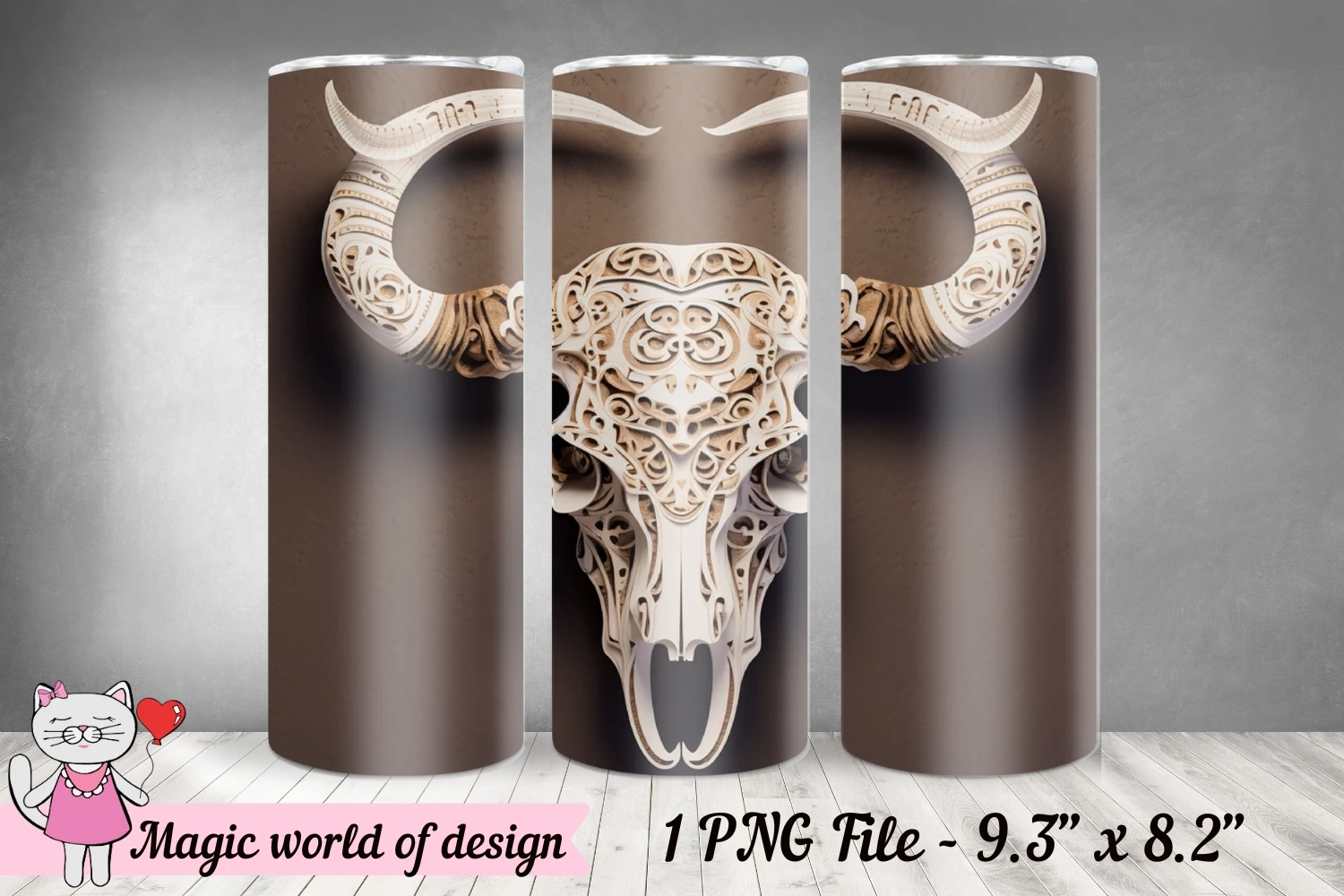 3D fresco Cow skull skinny Tumbler 20 oz
