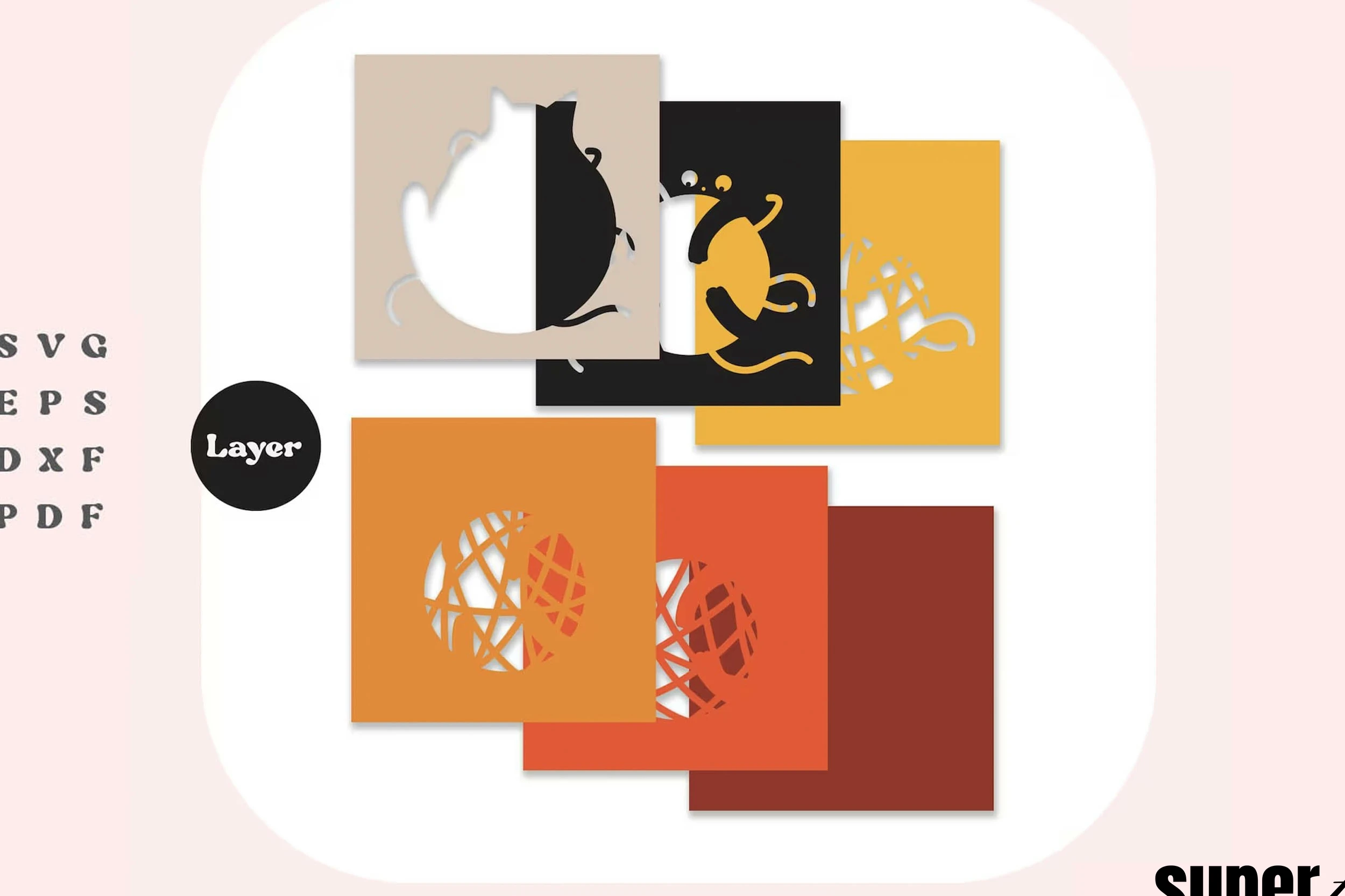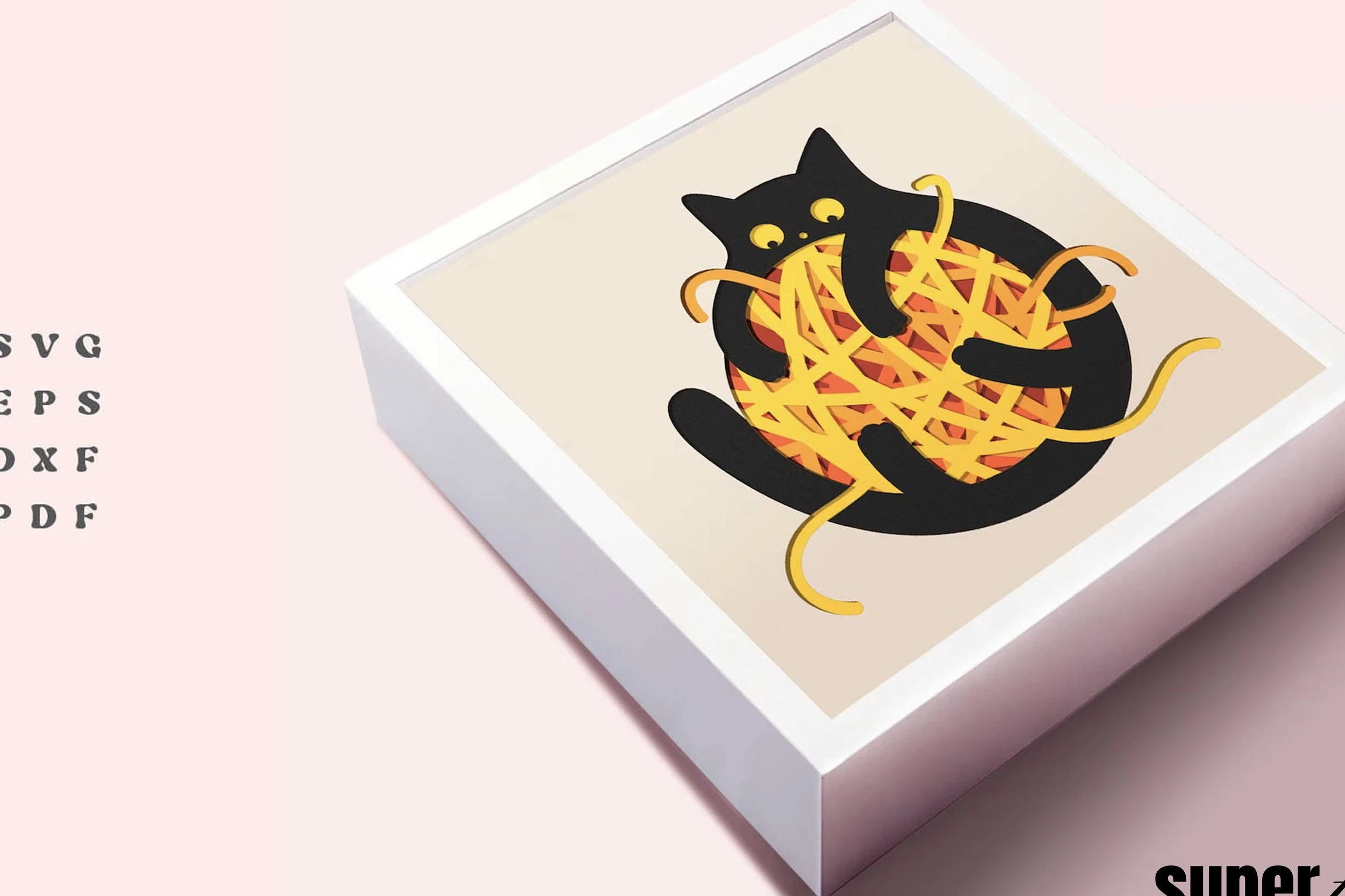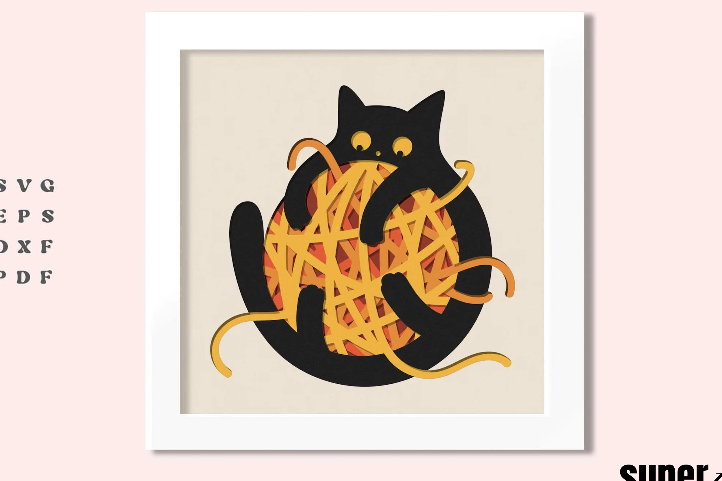 Cute Cat and Rainbow Rope Ball 3D Papercut Art