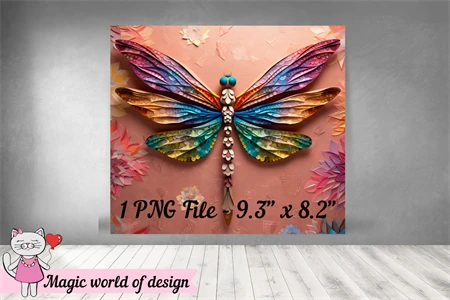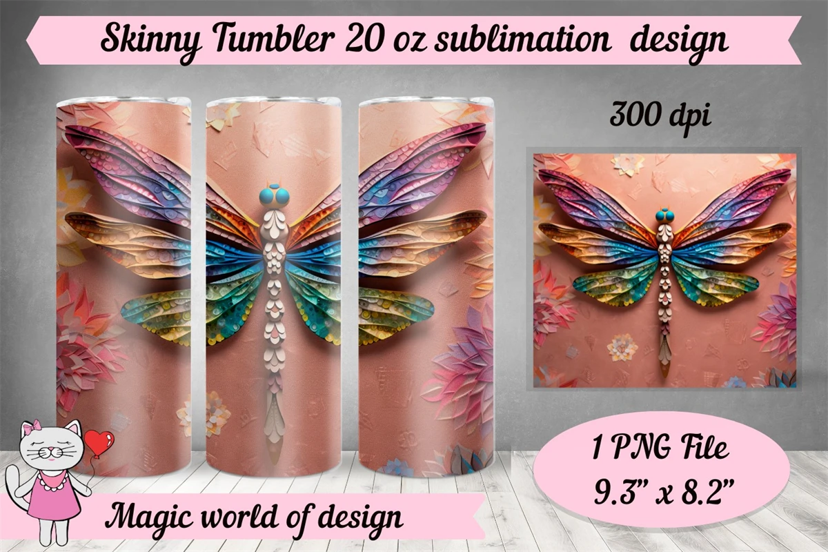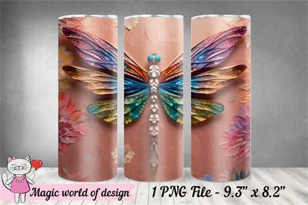 3D Dragonfly 20 oz Skinny Tumbler Wrap PNG, Sublimation