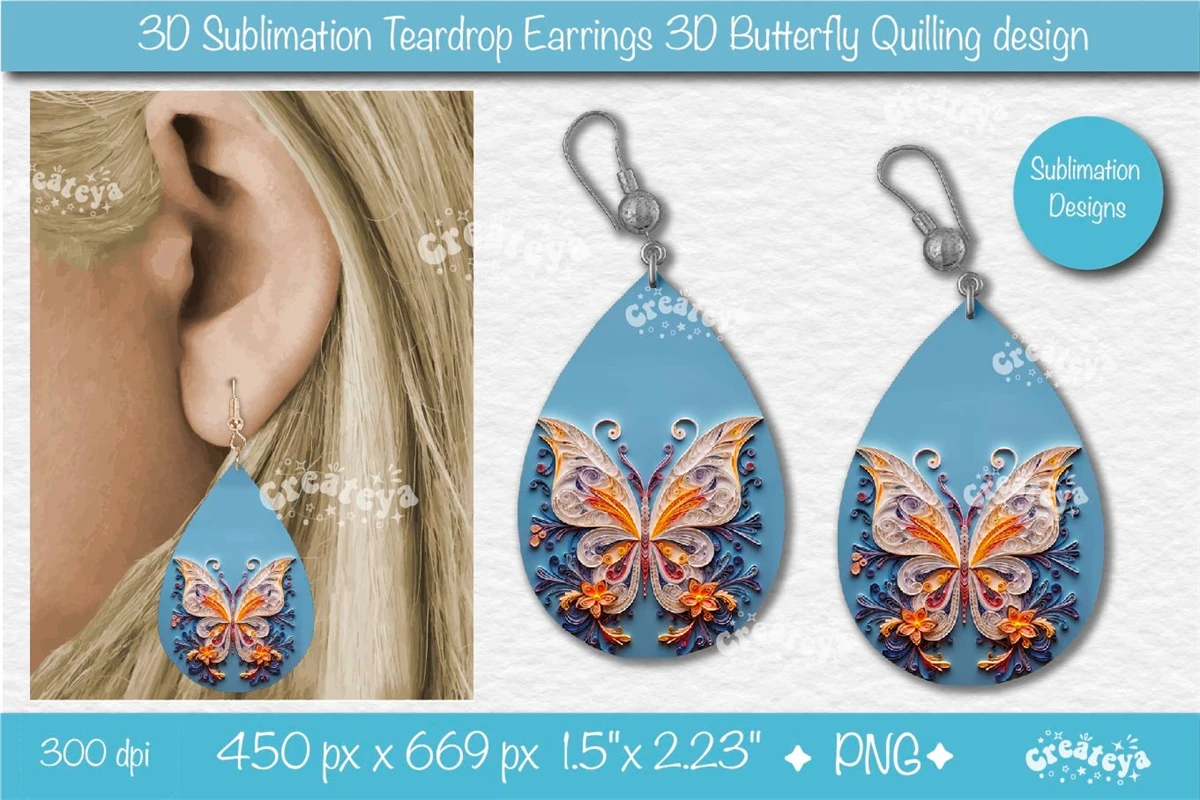 3D earring Teardrop sublimation with 3D Butterfly sublimation In Quilling paper style is perfect for summer teardrop earrings. Teardrop earring sublimation PNG. Cute earrings Design, Teardrop earring sublimation PNG Tear Drop Earring Printable Instant Download.