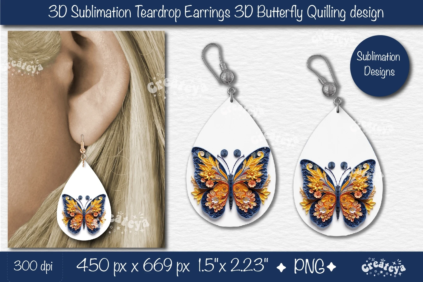 3D earring Teardrop sublimation with 3D Butterfly sublimation In Quilling paper style is perfect for summer teardrop earrings. Teardrop earring sublimation PNG. Cute earrings Design, Teardrop earring sublimation PNG Tear Drop Earring Printable Instant Download.