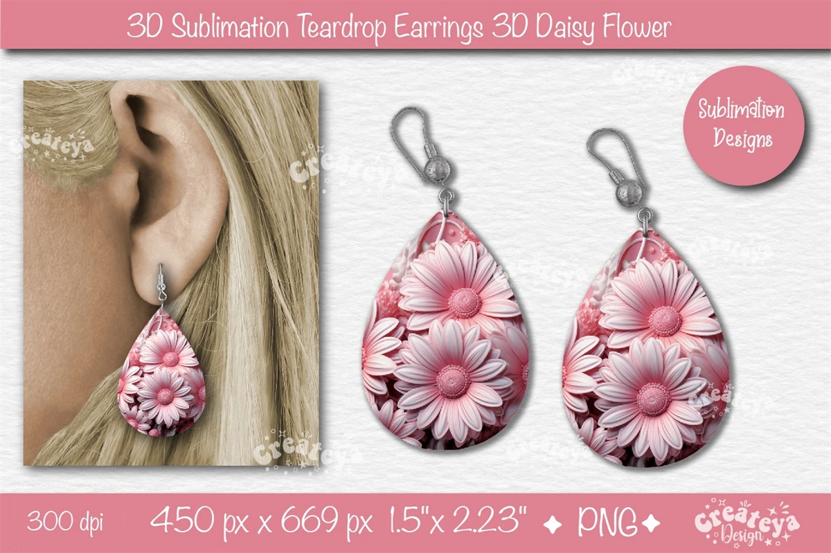3D earring Teardrop sublimation with 3D Daisy is perfect for summer teardrop earrings. Teardrop earring sublimation PNG. Cute earrings Design, Teardrop earring sublimation PNG Tear Drop Earring Printable Instant Download.