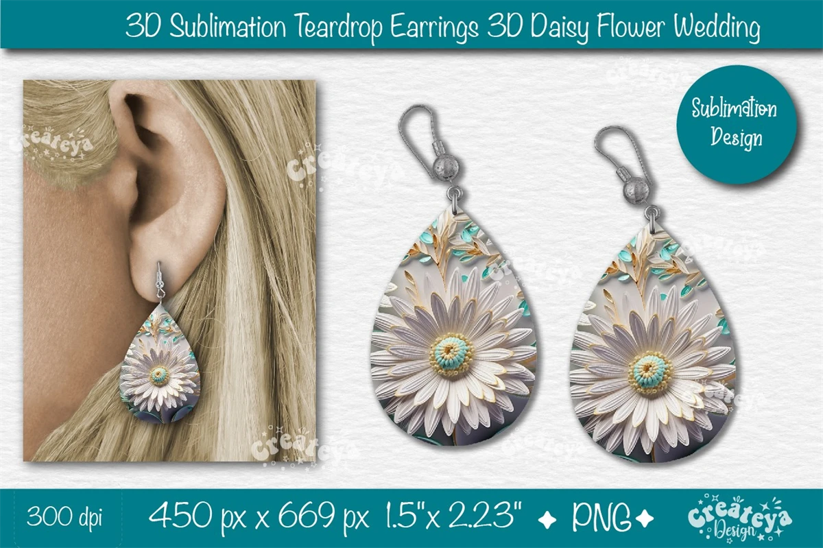 3D earring Teardrop sublimation with 3D Daisy is perfect for summer teardrop earrings. Teardrop earring sublimation PNG. Cute earrings Design, Teardrop earring sublimation PNG Tear Drop Earring Printable Instant Download.