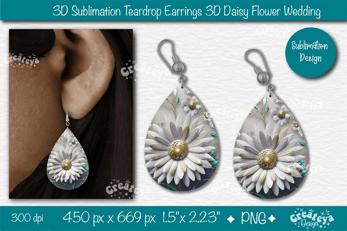 3D earring Teardrop sublimation with 3D Daisy is perfect for summer teardrop earrings. Teardrop earring sublimation PNG. Cute earrings Design, Teardrop earring sublimation PNG Tear Drop Earring Printable Instant Download.