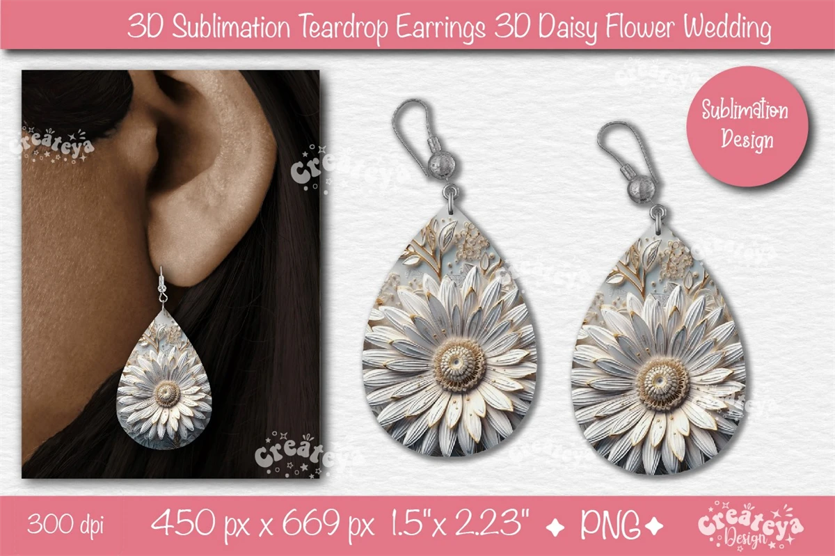 3D earring Teardrop sublimation with 3D Daisy is perfect for summer teardrop earrings. Teardrop earring sublimation PNG. Cute earrings Design, Teardrop earring sublimation PNG Tear Drop Earring Printable Instant Download.