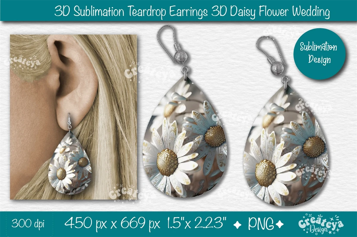 3D earring Teardrop sublimation with 3D Daisy is perfect for summer teardrop earrings. Teardrop earring sublimation PNG. Cute earrings Design, Teardrop earring sublimation PNG Tear Drop Earring Printable Instant Download.