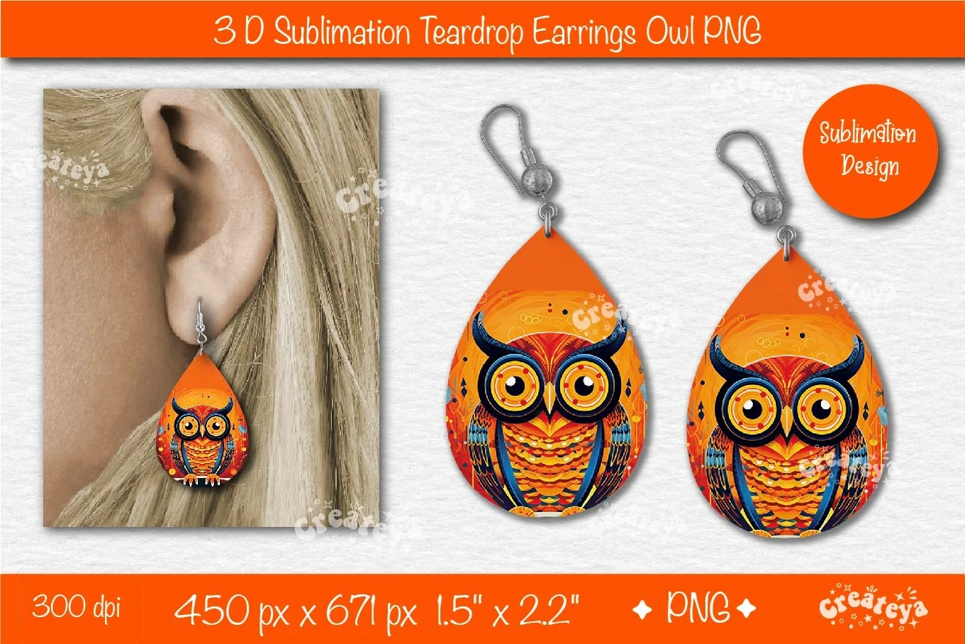 3D earring Teardrop sublimation with 3D Owl is perfect for summer teardrop earrings. Country style, farmhouse Folk style Teardrop earring sublimation PNG.